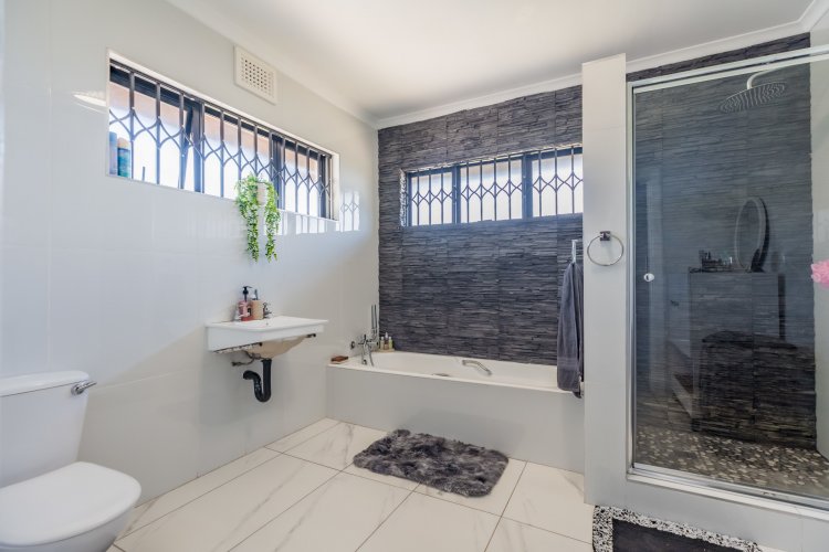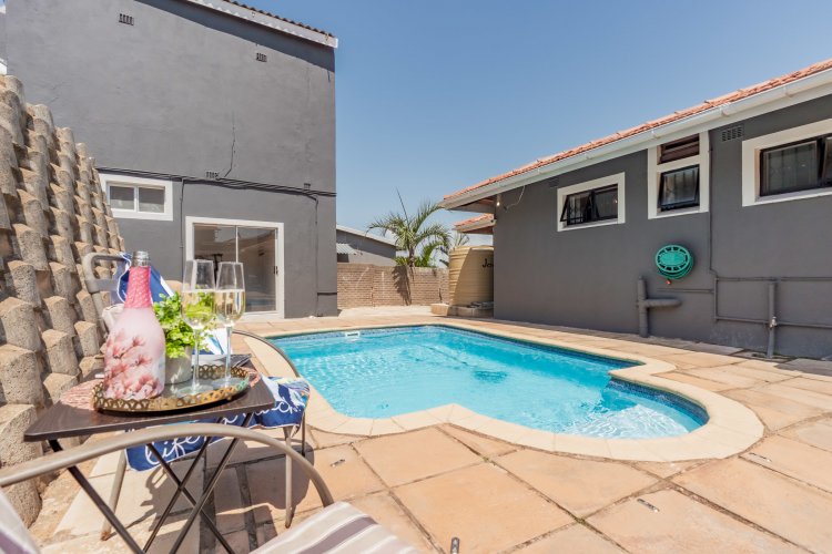 Outside, a sparkling newly fitted swimming pool takes centre stage, opening onto a covered entertainment patio ideal for year-round braais, family game nights, and alfresco dining. A versatile outbuilding with its own bathroom, presents endless possibilities to be transformed into a lucrative income-generating granny flat or home office.