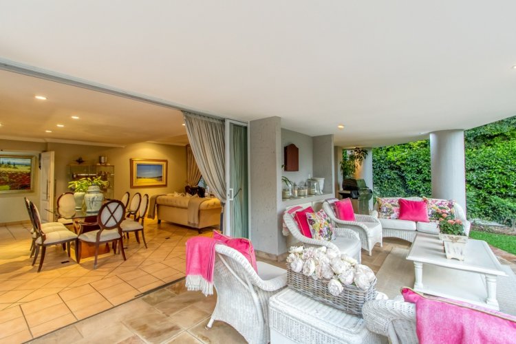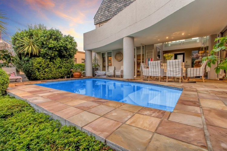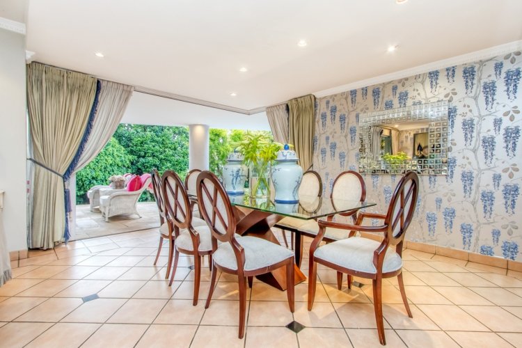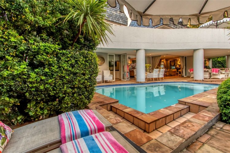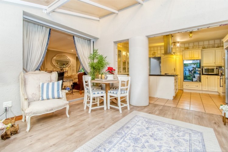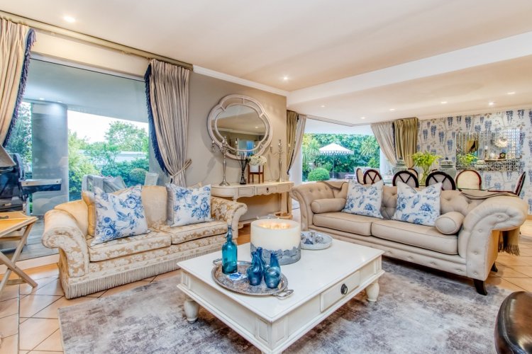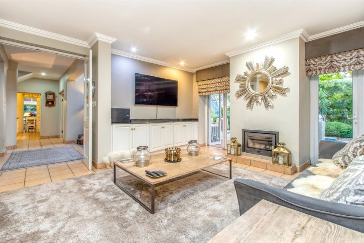 We are proud to present a charming, graceful, and much-loved family residence, perfectly positioned in the heart of Dainfern Golf Estate. The impressive double-volume entrance and welcoming reception hall flow seamlessly through to a well-appointed and well-equipped kitchen and three elegant and inviting reception areas. The living areas extend through expansive sliding doors that open onto a covered entertainer’s patio, overlooking a sparkling swimming pool and beautifully manicured wrap-around garden.