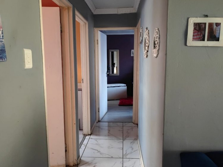 The kitchen leads to the spacious living room with enough space for your dining room or lounge suite. The main bedroom is en-suite with a shower, basin and toilet and the other two bedrooms share a full bathroom with a bathtub, basin and toilet. All the bedrooms are fitted with modern built-in units.