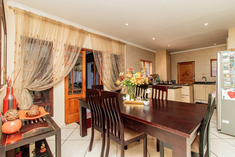 The dining room opens with doors leading out to a lovely entertainment area complete with a built-in braai—ideal for relaxed family gatherings and entertaining guests. The large lounge area is versatile and can easily be divided into a formal lounge and a separate TV or family room.