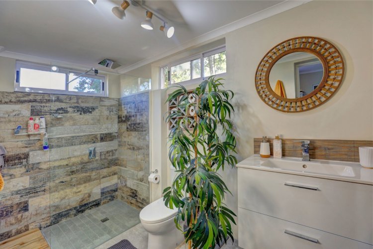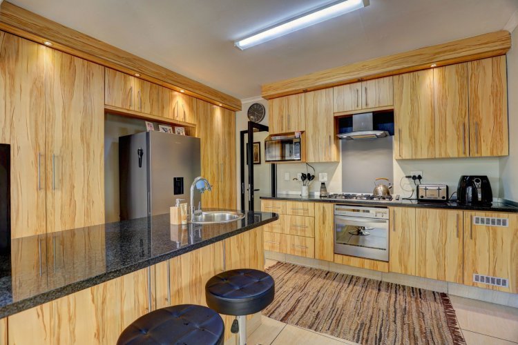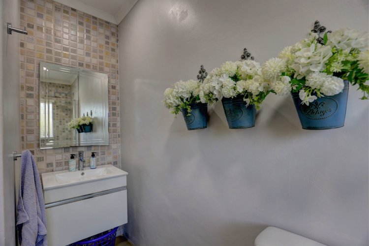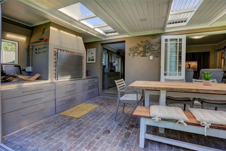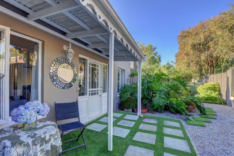 A private home, tucked away behind high walls – with lovely tranquil garden surrounding a pristine home. All 3 bedrooms are en-suite – with a spacious open plan kitchen off the living rooms. The covered patio with built-in braai connects the lush outdoors with the designer finishes indoors. A pleasant surprise awaits you. Just move in.