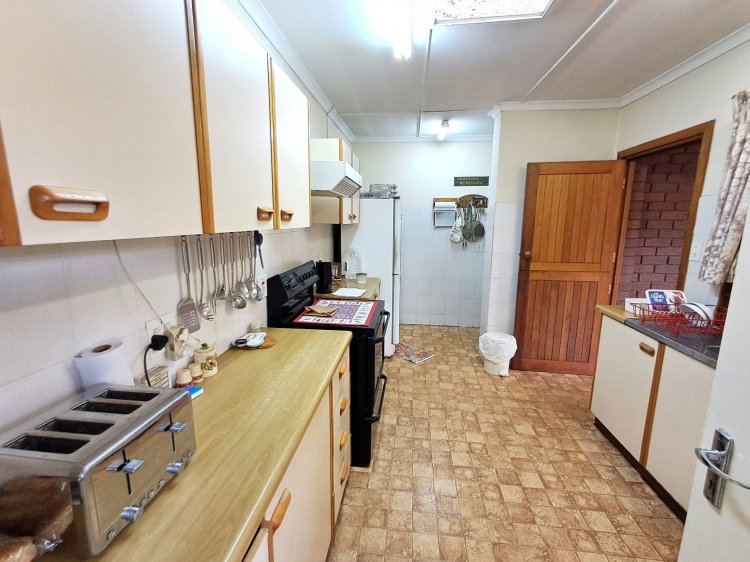 The lounge has a north facing sunroom for winter days and an air conditioner for added comfort. The kitchen is a reasonable size with an extractor fan, a stove, built in cupboards, a large closed in back veranda, laundry and access to the lockable garage and a staff toilet.