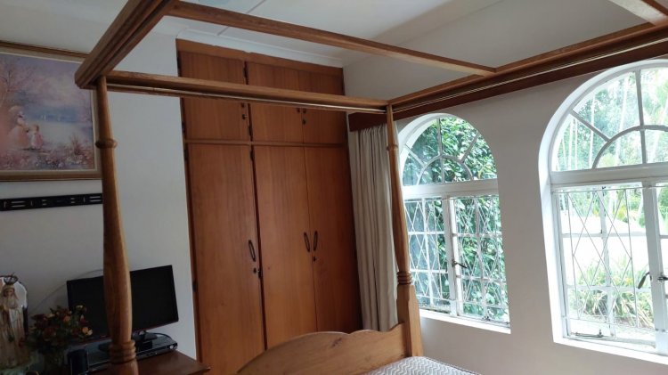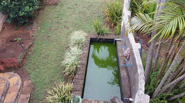 Outside, the property continues to impress with a neat, well-kept garden and a spacious double garage that can comfortably accommodate up to four vehicles. A wooden deck overlooks a tranquil goldfish pond and a sparkling swimming pool, complemented by a braai and entertainment area that’s ideal for hosting friends and family. Water tanks with a combined capacity of approximately 20,000 litres add excellent value, along with security cameras and an alarm system for peace of mind.