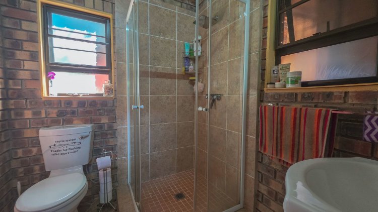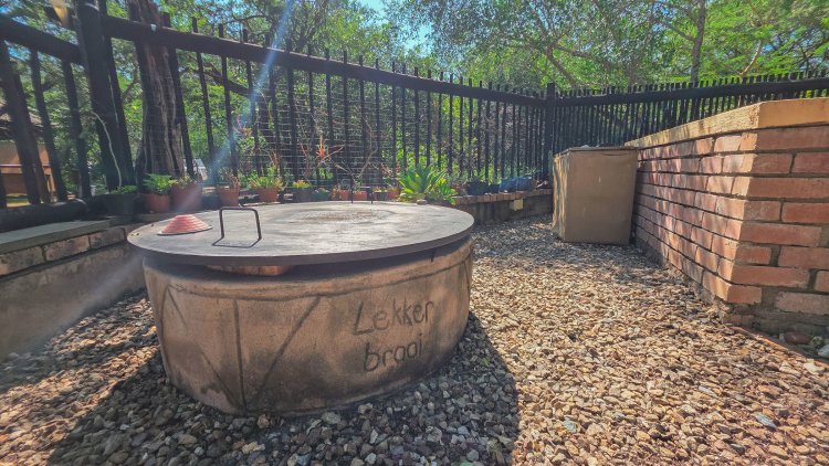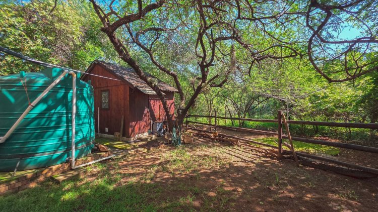 • 8 solar panels with inverter and 2 x 5 kVA batteries (reliable back-up power) • 5,000L rainwater harvesting tank with booster pump • 2,500L JoJo tank connected to municipal supply • Spacious 12m² Wendy House with electricity and alarm system • Triple carport • Sold unfurnished (only a few selected items remain)