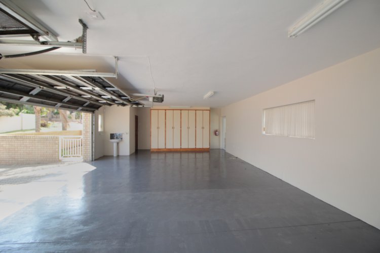 The property also includes extra-large tiled garages with one automated double garage door and one single automated garage door, offering ample space for vehicles and storage.