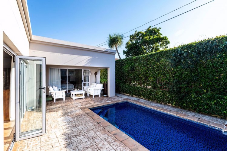 Welcome to this versatile property offering a main residence, a large 2 bedroom flat and 2 separate studios. Based in a highly sought after street in Nahoon, this property allows for multi-generational living or savvy investment opportunity. The main house offers a spacious open-plan layout, with an indoor Braai area leading to a sparkling swimming pool. The stack away doors create a light and airy living space flowing seamlessly to the kitchen and large master bedroom with ensuite bathroom. The 2 bedroom flat with separate entrance brings in a substantial rental income, or with minor changes can be incorporated into the main residence to create a large family home. This special property is within walking distance to local shops and schools, so give us a call today to arrange a viewing.