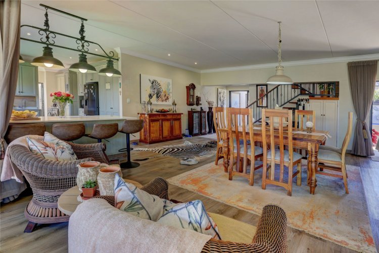 Set within the sought-after Outeniquasbosch Wildlife Estate, this beautifully designed double-storey home offers the perfect blend of modern comfort, secure estate living, and a unique connection to nature. Known for its free-roaming wildlife, excellent security, and on-site school, Outeniquasbosch remains one of the Garden Route's most desirable lifestyle estates.