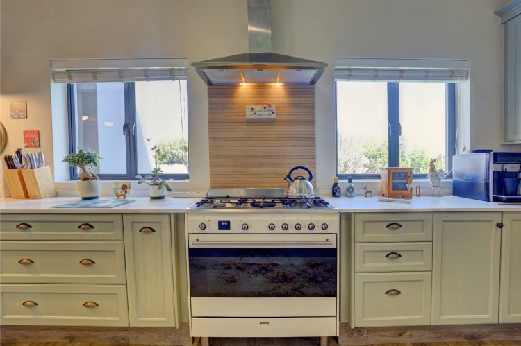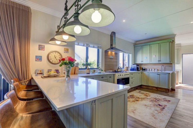 At the heart of the home is a warm, character-filled kitchen that combines classic charm with modern functionality. Ample cabinetry, generous countertops, and quality appliances make it both practical and inviting, whether you're cooking for family or entertaining guests. The open-plan design allows easy interaction with the living and dining areas, creating a welcoming atmosphere throughout the home.
