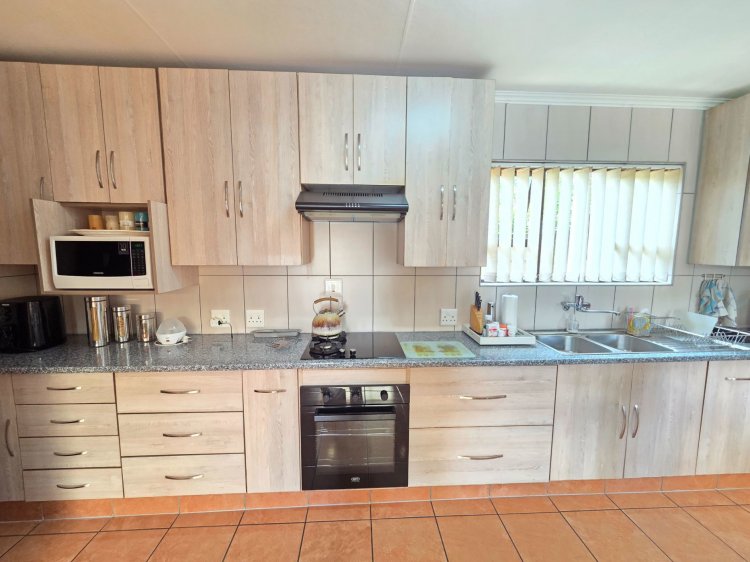 This generously sized family home is perfectly positioned in a quiet and secure neighbourhood, offering a wonderful retreat for comfortable family living. The main house boasts an effortless flow between the living areas and the spacious, neat kitchen, which is fitted with a gas hob and designed to accommodate everyday family life with ease.