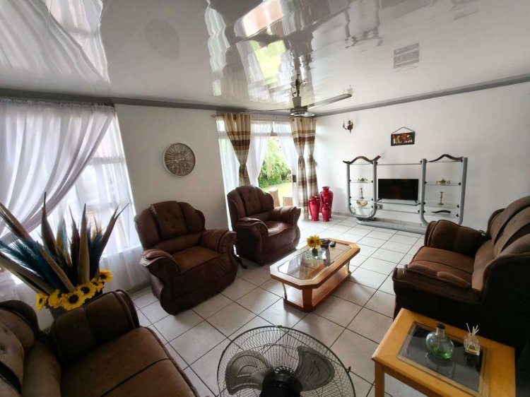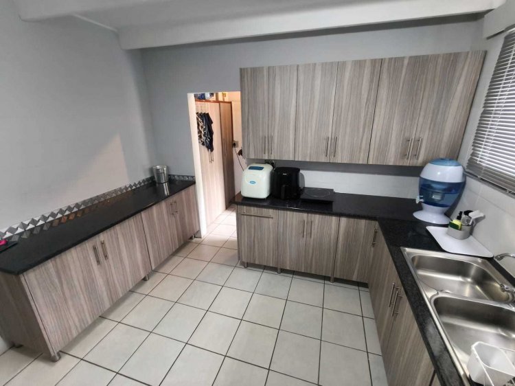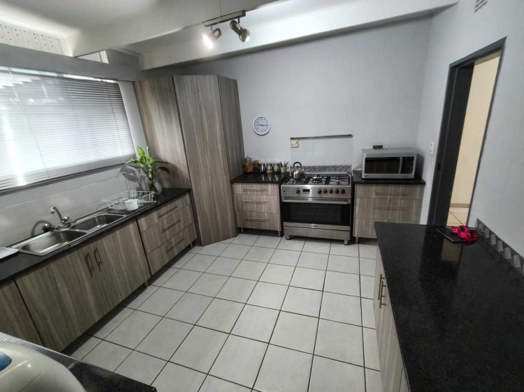 3 Bedrooms and Study 2 Bathrooms + separate toilet Lounge, TV room & dining room Kitchen & laundry Entertainment area + braai patio Double garage & double carport Wendy house for storage 1-bedroom flatlet with own entrance. Perfect for family living or extra rental income. Domestic Room or extra bedroom upstairs.