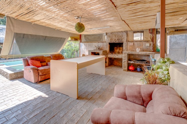 Outside where the memories are made - a lapa with fitted sinks and cupboards, covered jacuzzi for slow, indulgent evenings. A covered braai area, an outdoor shower, and a trampoline for young energy and happy noise. A cottage adds space for family, guests or extra income.