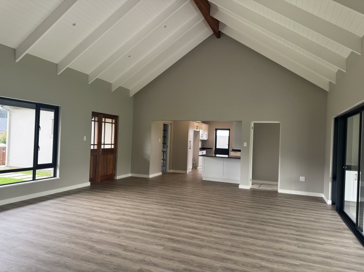 Interior Features • A welcoming entrance hall and direct access from the garage into the kitchen • Open-plan single-level living at its finest – the lounge, dining, and veranda spaces, perfect for year-round entertaining. • Vaulted ceilings in the living and dining areas enhance light and space. • A well-appointed kitchen with separate scullery and laundry. • Three generously sized bedrooms, all easily accommodating double beds. • 2 bathrooms: a luxurious main en-suite with shower, bath, double basins, and toilet; a stylish family bathroom with shower, toilet, and basin