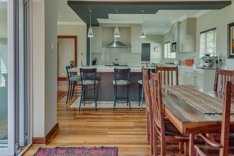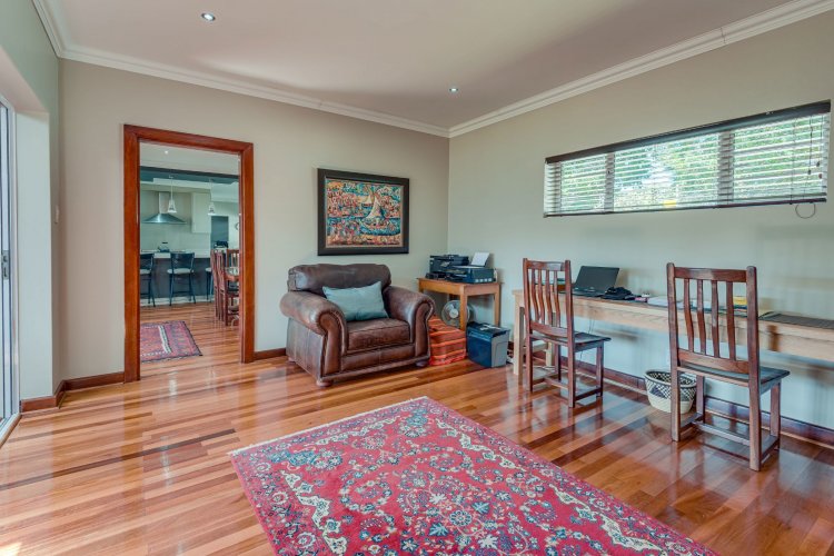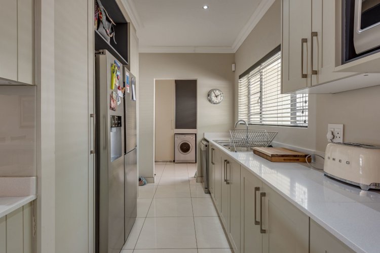 Interesting and mysterious behind high walls, an abundance of space wows you upon entering this property. A vast front garden awaits like a clear canvas, inviting the imagination to run riot. Inside awaits beautiful wooden floors, fresh open living spaces with a great flow and as the focal point of the home, a stunning kitchen. Three comfortable bedrooms and two modern bathrooms are nicely positioned to one side of the house whilst the opposite section comprises of the guest cloakroom, double garage and staff accommodation. Exceptionally neat and in great condition, this happy family home is well positioned in a quiet and upmarket section of the suburb.