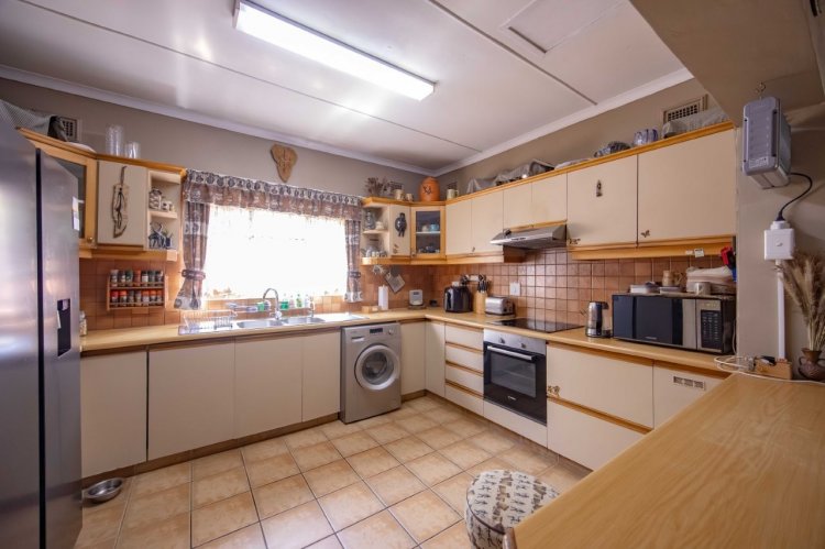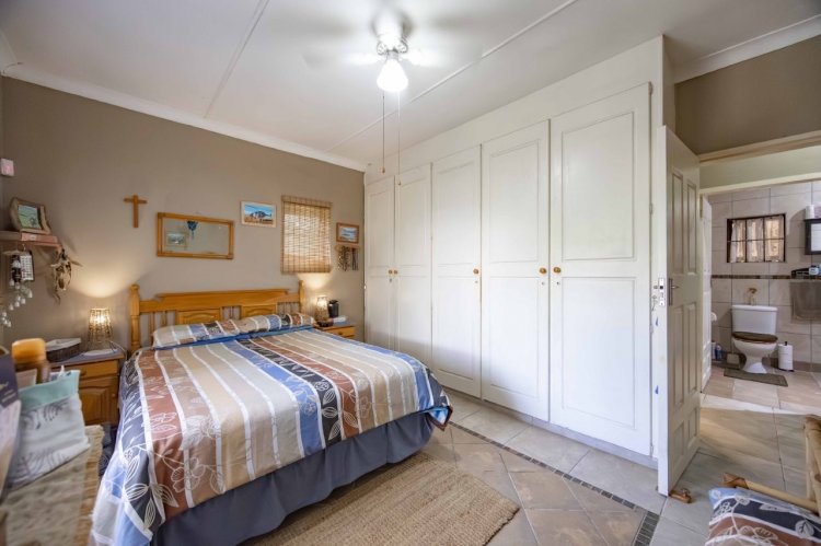 The separate granny cottage is a generous 92 square meters in size and it features a main bedroom with a separate room off it that could be used as an office or for a small child, a modern bathroom, lounge and a beautifully fitted open plan kitchen with granite tops, under counter oven, hob and extractor and a separate scullery. The granny flat has it's own pre paid meter and a generator connection. It also has it's very own, spacious garden that is fenced off from the main garden. There is a 2500 litre fresh water JO JO tank with filters that supplies the main house and granny cottage. The house and the granny flat have fibre internet connection. The property is also fully walled with electric fencing & automated gates.