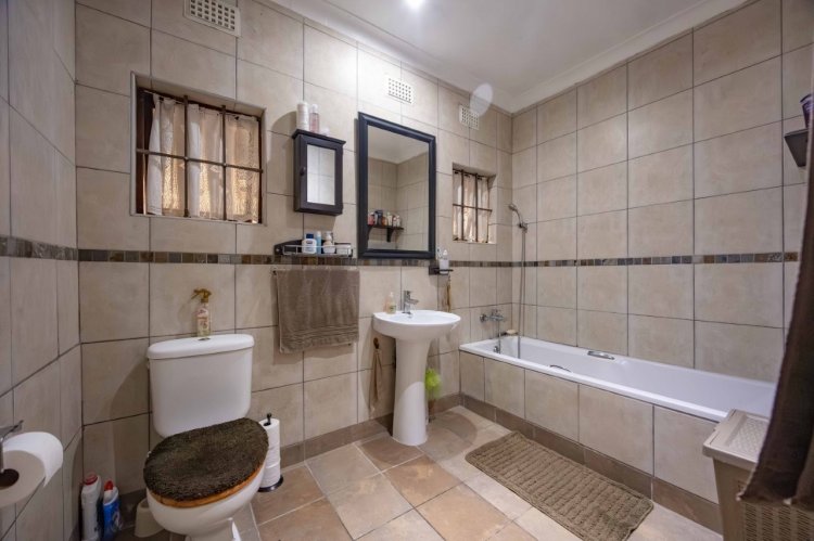 A single lock up garage with a double aluminium carport plus extra parking for +- 8 cars. The cherry on top is a large newly refurbished marblite pool surrounded by a beautiful garden where children and pets can play to their hearts content. There is a lovely, enclosed patio with a water feature and a built in braai for all weather conditions come rain or shine.