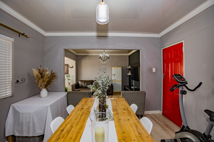 Tucked away in a peaceful, well-established neighbourhood, this charming 3-bedroom, 2-bathroom home offers the perfect blend of comfort, space, and flexibility. With a separate flatlet, single garage, and secure parking for up to 6 vehicles, this property is ideal for families, home-based professionals, or investors seeking rental income potential. Step inside to discover a welcoming open plan living and dining area featuring elegant PVC ceilings and stylish white wood grain PVC blinds. The heart of the home, the kitchen, is finished with knotty pine ceilings, built-in cupboards, tiled flooring, and a fitted electric oven and hob—combining warmth and practicality in one inviting space. Two of the three bedrooms are fitted with built-in 3-door cupboards and laminated flooring, offering both comfort and storage. The home includes two tiled bathrooms, providing clean, modern finishes and everyday functionality. Additional Highlights: Aluminium windows throughout for long-lasting durability Separate flatlet with tiled flooring, aluminium windows, an open-plan dining and kitchenette area, a private bedroom, and a bathroom with shower, toilet, and basin — ideal for guests, extended family, or rental income Single garage and generous parking space for 6 vehicles, a rare find for the area Indoor braai area ideal for year-round entertaining, regardless of the weather Low-maintenance finishes and a thoughtful layout make this property move-in ready Perfectly suited for multi-generational living, working from home, or supplementing your bond with rental income, this home presents incredible value and opportunity.