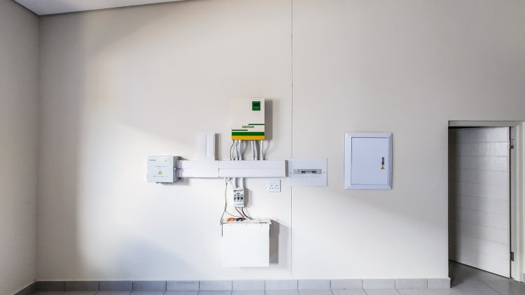 -5kVA inverter system with battery backup and five solar panels, providing energy efficiency and peace of mind