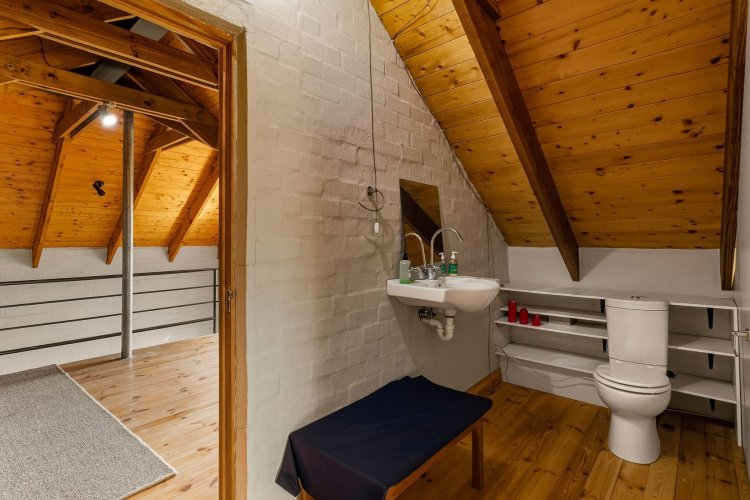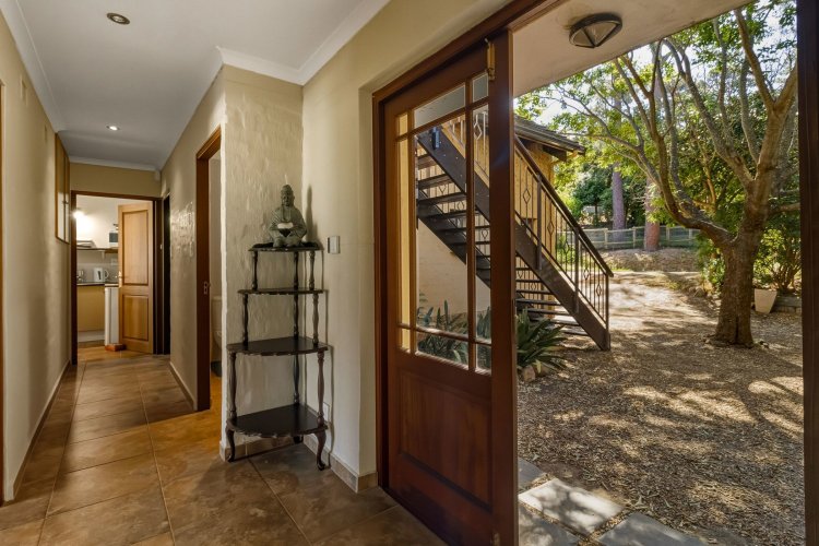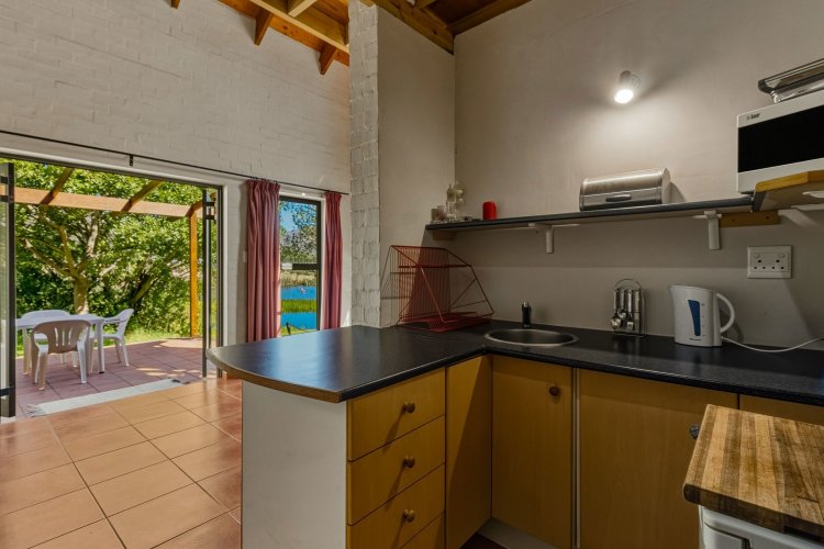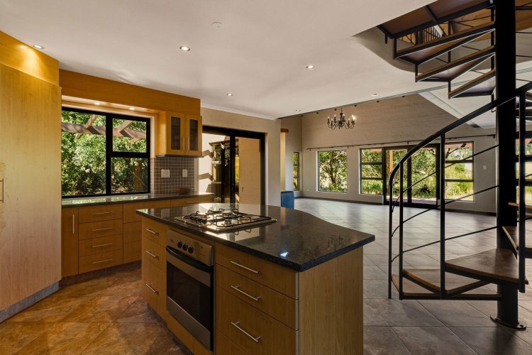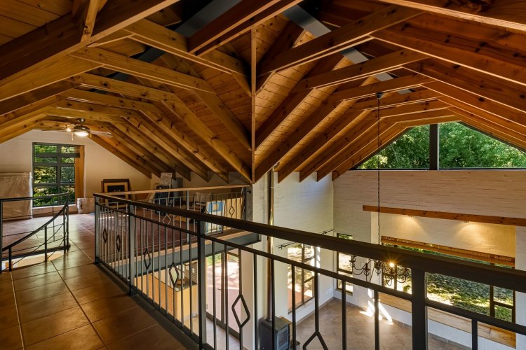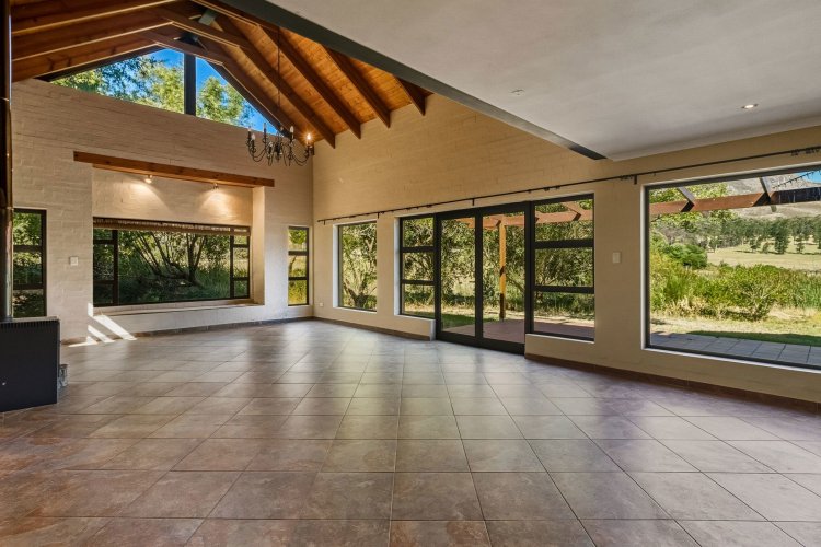 Set on the edge of one of Wedderwill's three dams, the property boasts a double garage, space for a small indigenous garden, and lush planting, perfect for creating your own private oasis. The home is divided into three distinct sections: