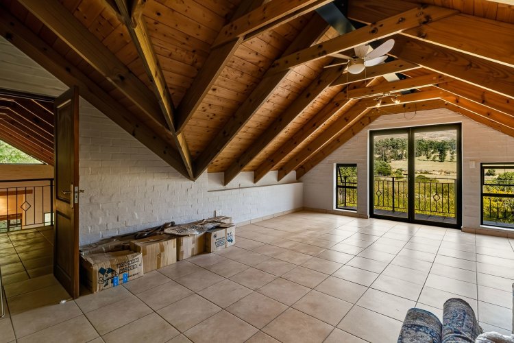 • Part One: A stunning double-volume living/dining area with an open plan kitchen flowing to a patio that frames breathtaking mountain views. A lovely large main bedroom with full en-suite and upstairs offers a generous office or studio space. • Part Two: A spacious bedroom with its own bathroom, ideal for family or guests. This has it's own entrance. • Part Three: A compact living area with a kitchenette and bathroom, plus an upstairs pyjama lounge and bedroom over the garage—perfect for a teen suite, guest quarters, or home office.