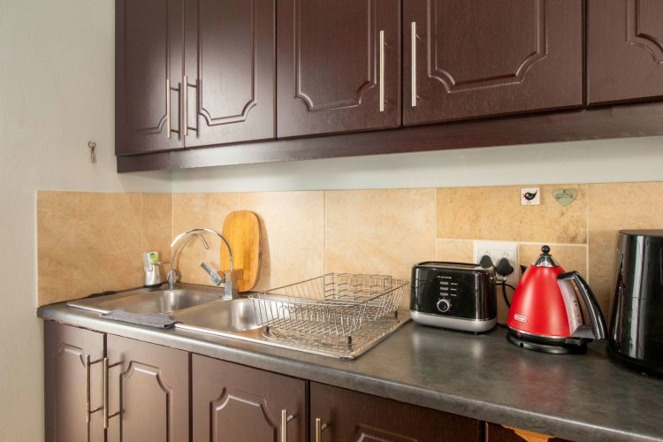 The kitchen is both stylish and functional, featuring a gas hob and extractor, ideal for easy entertaining. Comfort is further enhanced with air conditioning in the main bedroom and living area. Outside, a splash pool (currently not in use) offers the option of reinstatement for warm summer days.