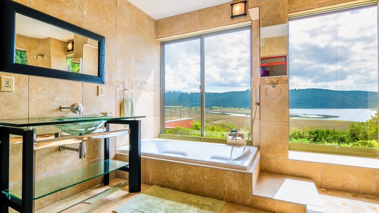 Soak in the views as the light shifts over the mountains and lake — thanks to floor-to-ceiling windows and sliding glass doors that blur the lines between indoors and out.