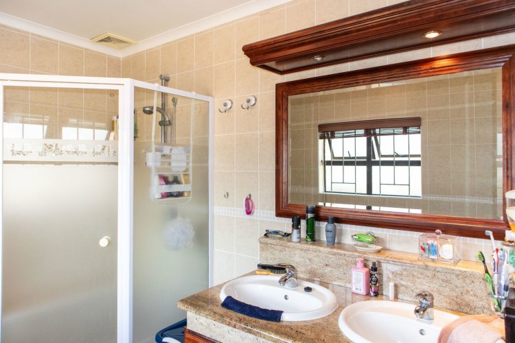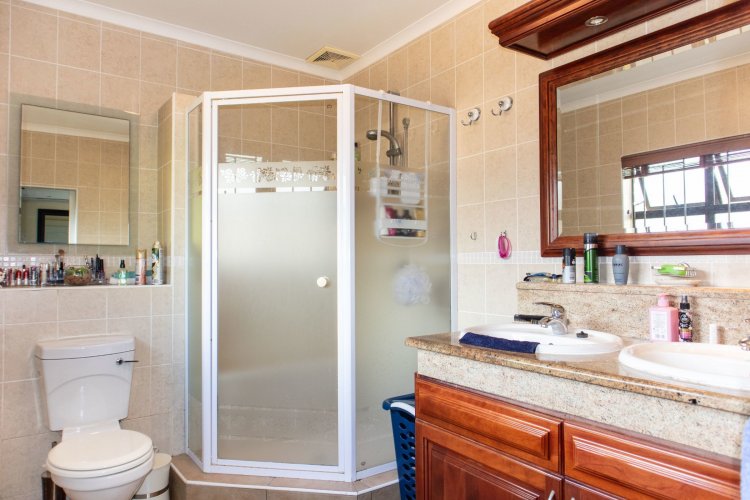 The home offers three double-sized bedrooms, two of which benefit from their own en-suite bathrooms, plus a separate family/guest bathroom. Parking is a breeze with a double lock-up garage and ample extra guest parking. Its location is ideal, just a short drive to schools, shops, and the mall, with easy access to the freeway.