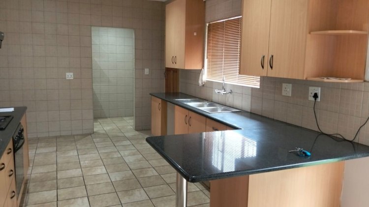 Beautiful face brick townhouse comprising of an open plan lounge, dining room and neatly fitted kitchen with granite tops. There is also a walk-in pantry. Three well-sized bedrooms, two full bathrooms, main en-suite. Double automated garaging, with door leading directly into the house. Paving in front, small manageable garden at the back. Pre-paid electricity.