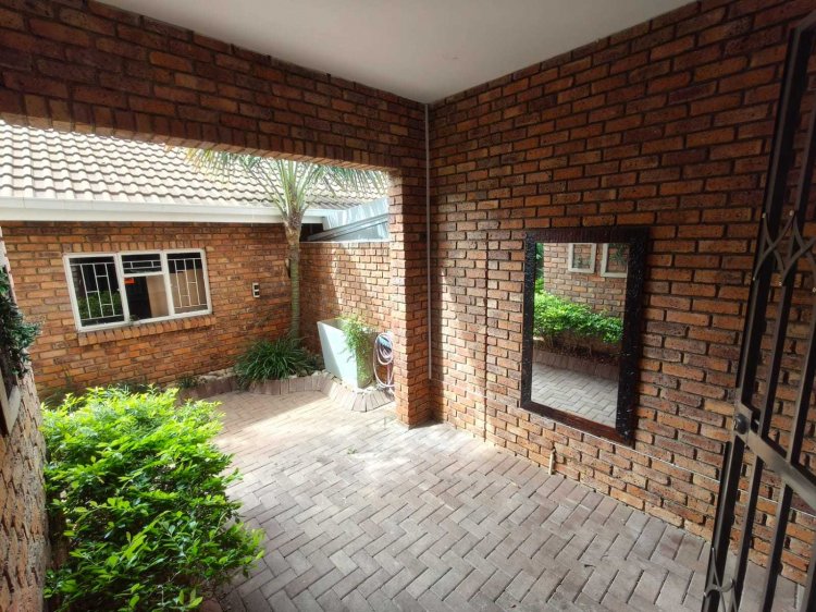 • 3 comfortable bedrooms with built-in cupboards. • 2 bathrooms, with the main bedroom having its own En-suite bathroom. • Guest toilet downstairs for visitors. • Spacious lounge and dining area – perfect for family time. • Kitchen with separate scullery and laundry for extra convenience. • Study – ideal for working from home or homework space. • Main bedroom walks out to a private patio. • Handy storage space underneath the stairs. • Private courtyard at the back with a built-in braai – great for entertaining. • Double garage with secure parking.