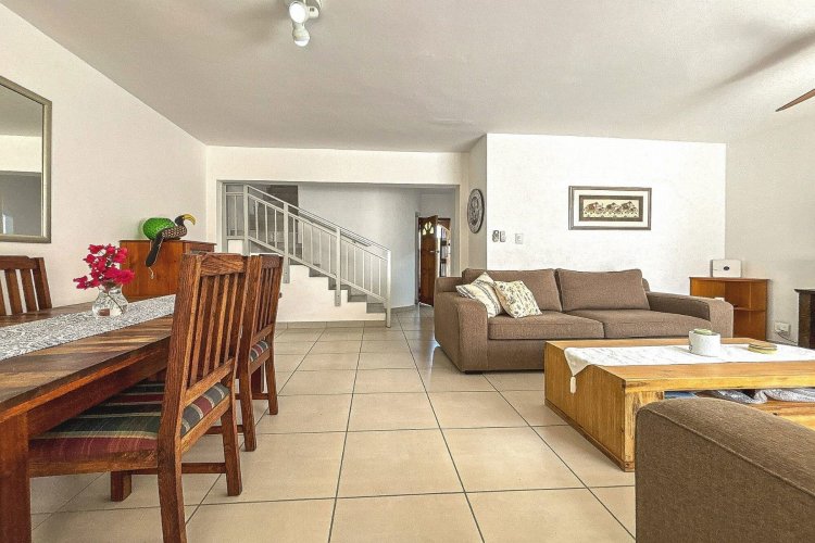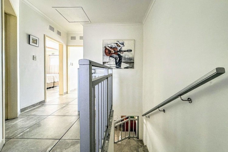 Upstairs, you will find three bedrooms that have been newly tiled and equipped with built-in cupboards. The main and second bedrooms both have access to a balcony that offers a glimpse of the sea. The bathrooms have been upgraded to enhance the personal grooming experience with a touch of luxury.