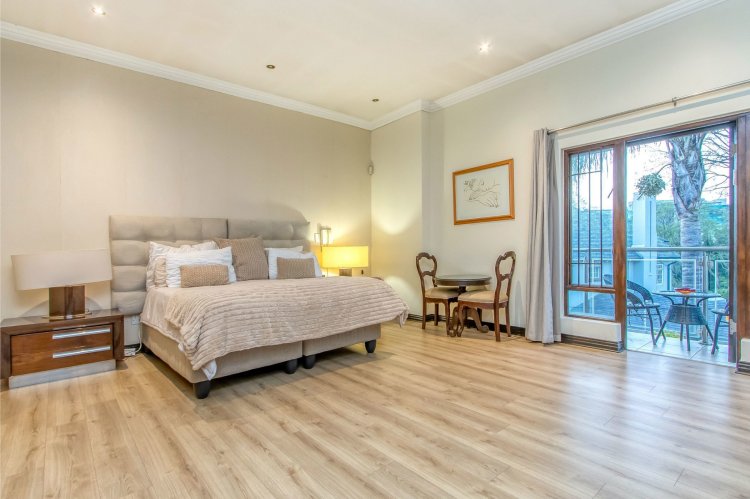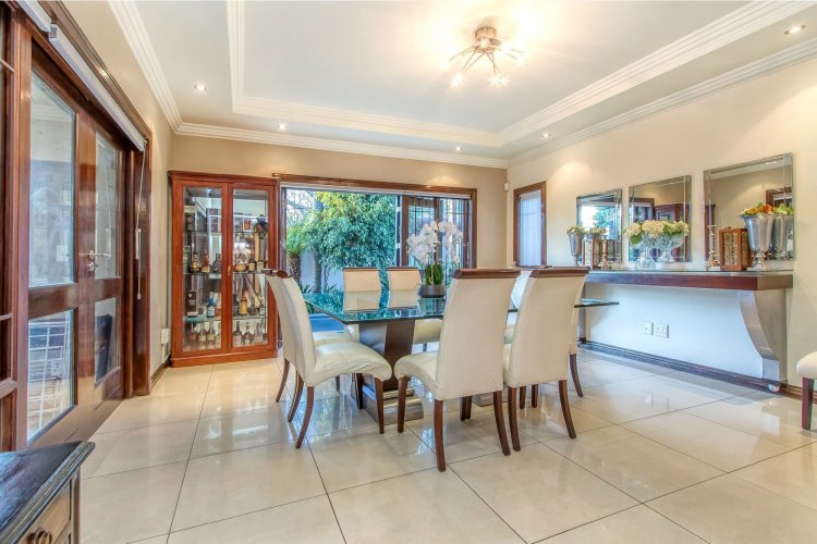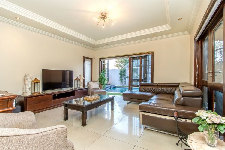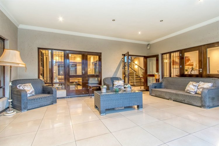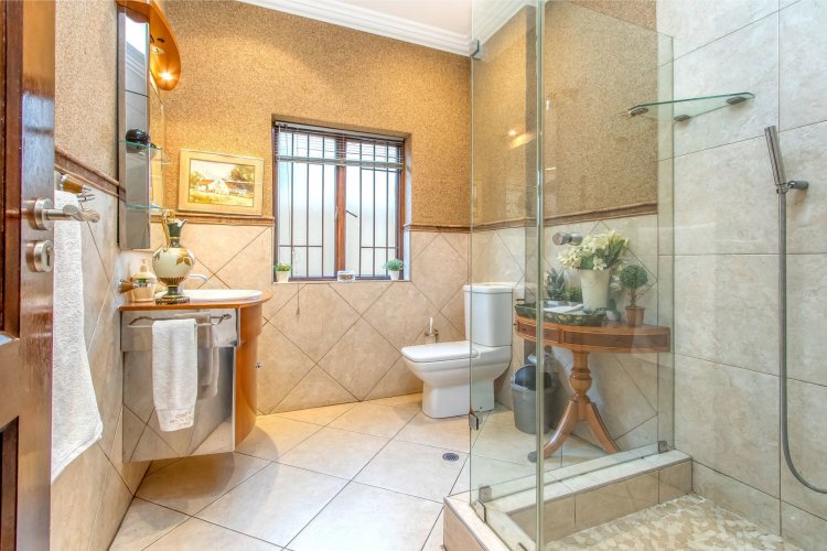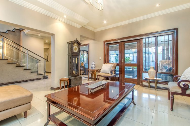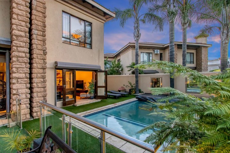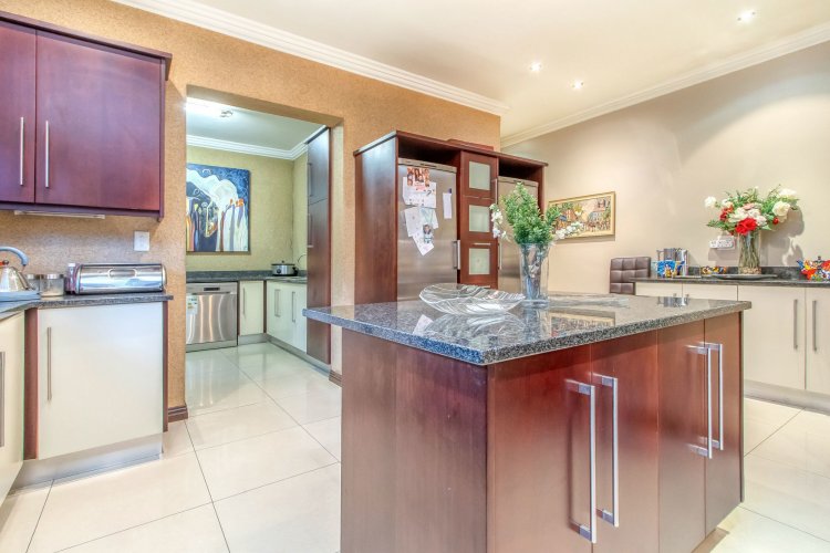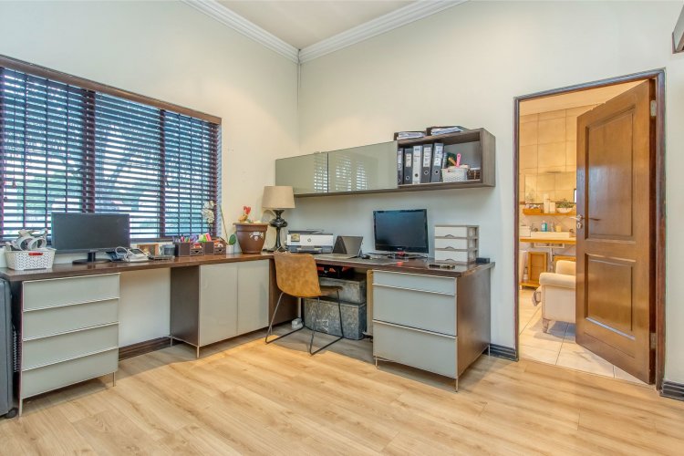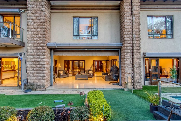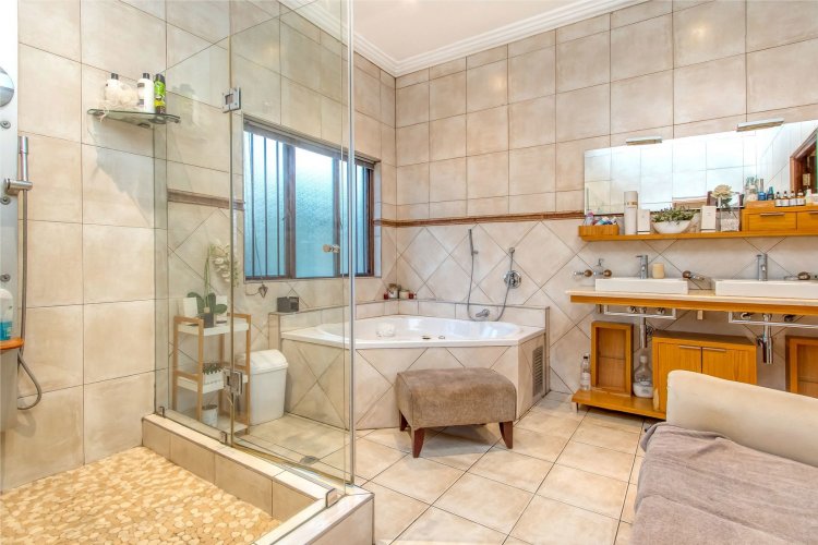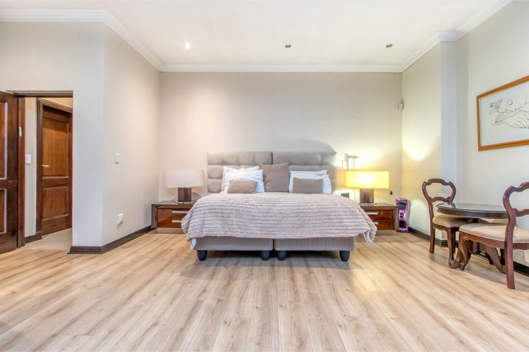Nestled in the highly sought-after, secure, and enclosed Waverley suburb, this modern and contemporary double-storey cluster is a true gem in immaculate condition. Designed for effortless family living, it seamlessly combines style, comfort, and functionality. Step into the impressive double-volume entrance hall that flows effortlessly into three generously proportioned living areas: a formal dining room, formal living room, and a cozy family TV room. The open-plan layout encourages both intimate family gatherings and larger-scale entertaining. The ground floor offers a fourth bedroom with its own bathroom, perfect as a guest suite, home office, craft room, or study. The adjoining kitchen, with a separate scullery, is the heart of the home, ready to inspire culinary creativity whether for family dinners or entertaining guests. A sweeping staircase leads to the upper floor, home to the palatial master bedroom. Boasting an en-suite bathroom, private study, walk-in dressing room, and access to a balcony with stunning treetop and sky views, this master suite is the ultimate haven for rest and relaxation. Three additional bedrooms each enjoy their own en-suite bathrooms, ensuring comfort and privacy for the whole family. This home features underfloor heating throughout for year-round comfort, and an inverter ensures uninterrupted living during power outages. Solid wood interior doors, architraves, moulded cornicing, and skirting boards showcase the exquisite attention to detail throughout.