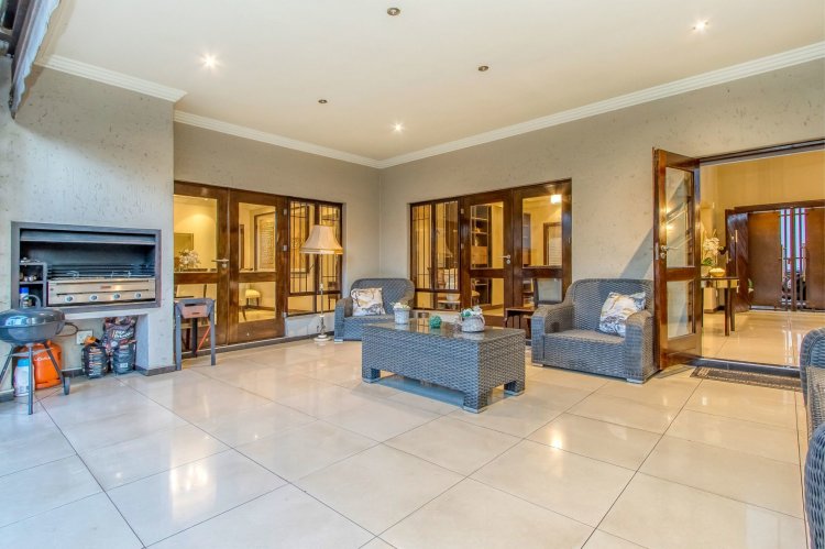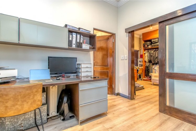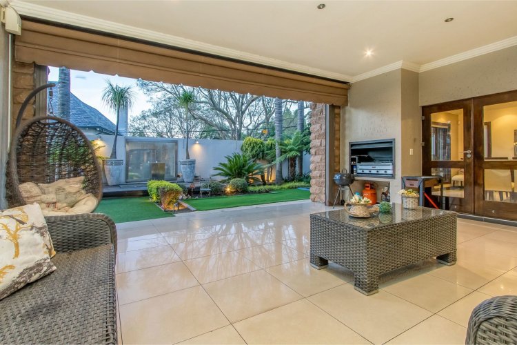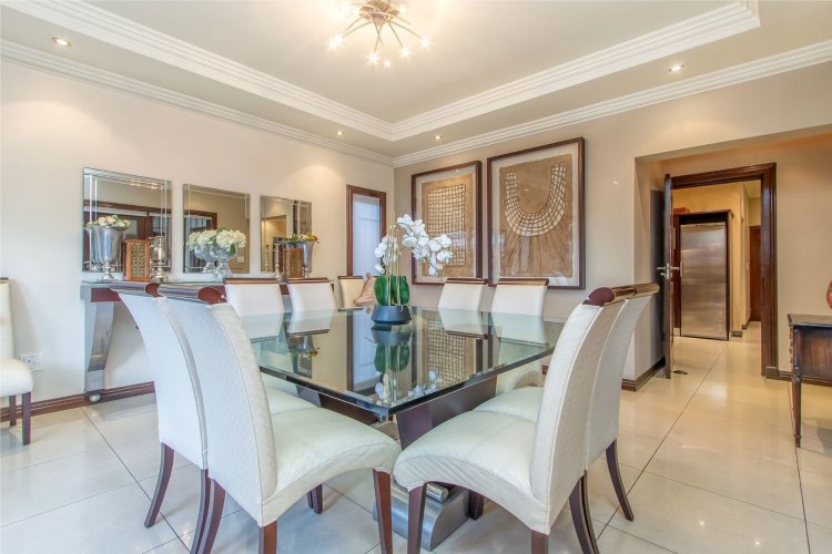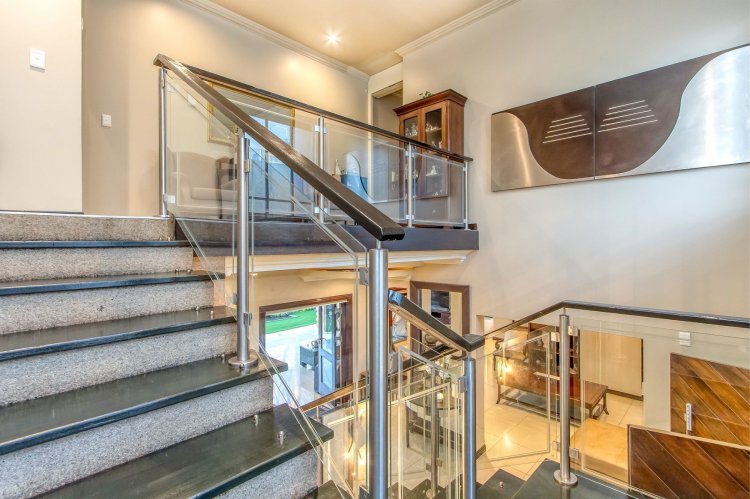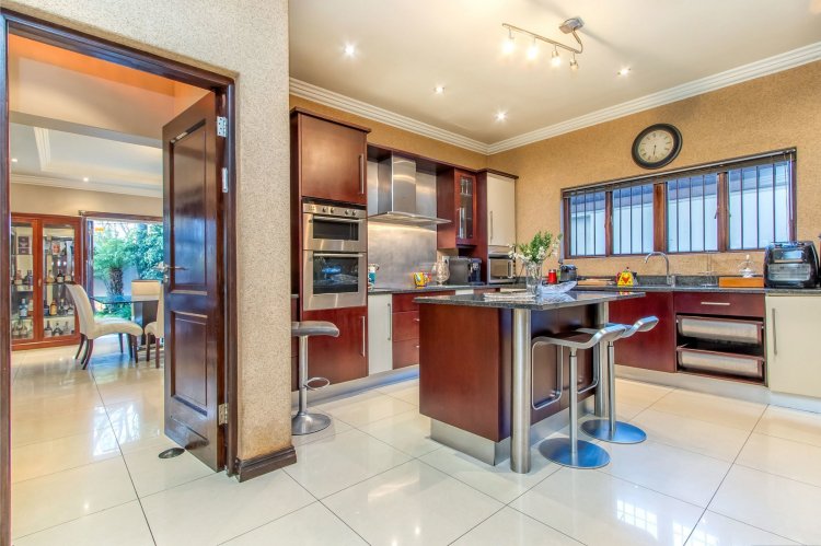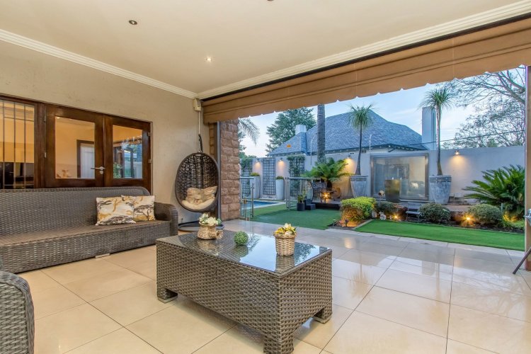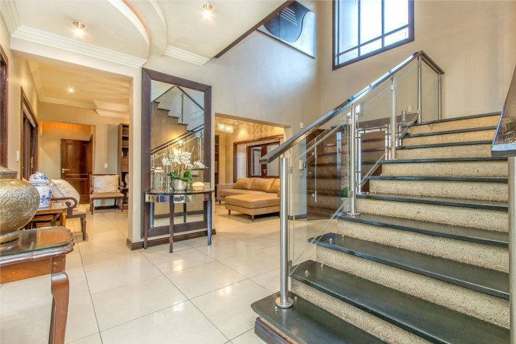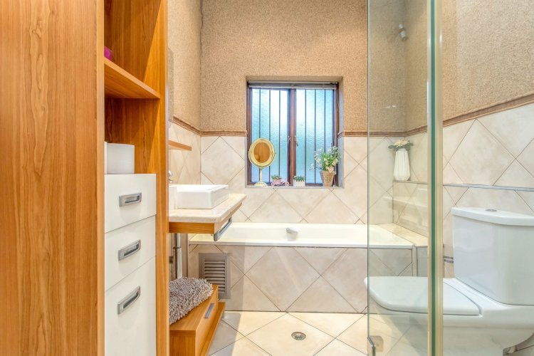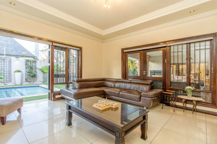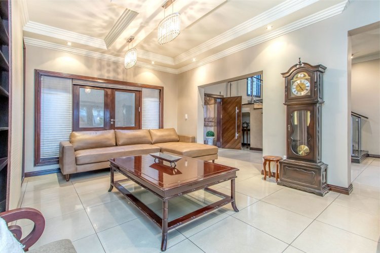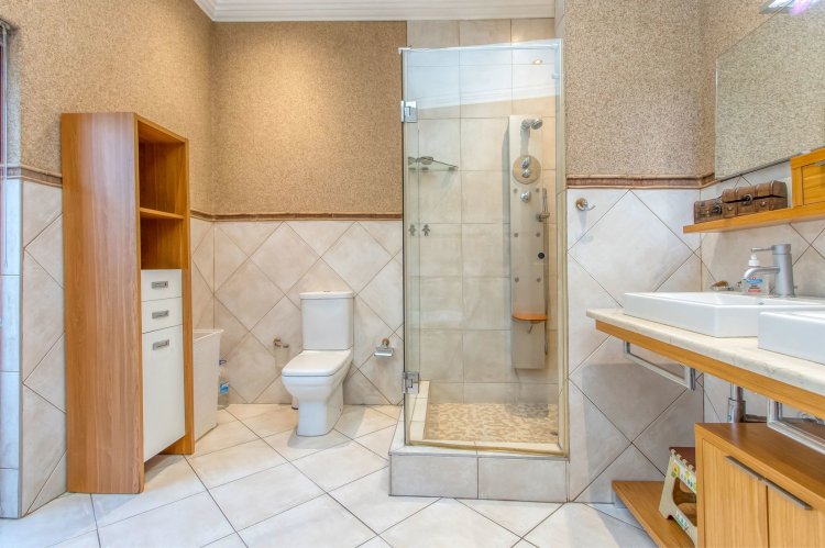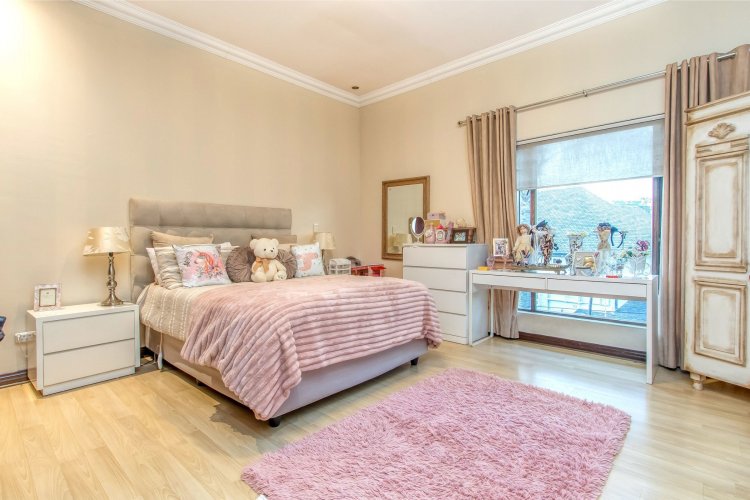 Nestled in the highly sought-after, secure, and enclosed Waverley suburb, this modern and contemporary double-storey cluster is a true gem in immaculate condition. Designed for effortless family living, it seamlessly combines style, comfort, and functionality. Step into the impressive double-volume entrance hall that flows effortlessly into three generously proportioned living areas: a formal dining room, formal living room, and a cozy family TV room. The open-plan layout encourages both intimate family gatherings and larger-scale entertaining. The ground floor offers a fourth bedroom with its own bathroom, perfect as a guest suite, home office, craft room, or study. The adjoining kitchen, with a separate scullery, is the heart of the home, ready to inspire culinary creativity whether for family dinners or entertaining guests. A sweeping staircase leads to the upper floor, home to the palatial master bedroom. Boasting an en-suite bathroom, private study, walk-in dressing room, and access to a balcony with stunning treetop and sky views, this master suite is the ultimate haven for rest and relaxation. Three additional bedrooms each enjoy their own en-suite bathrooms, ensuring comfort and privacy for the whole family. This home features underfloor heating throughout for year-round comfort, and an inverter ensures uninterrupted living during power outages. Solid wood interior doors, architraves, moulded cornicing, and skirting boards showcase the exquisite attention to detail throughout.
