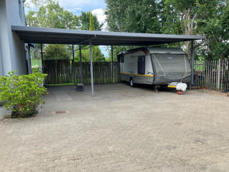 ADDITIONAL FEATURES • Garden shed • Domestic quarters • Ample secured parking • Three covered carports • Automated double garage • Centerilized alarm system • Computerized irrigation system • 2 x electric geysers with time switches • 2,400-liter Jo-Jo tank with high-pressure pump • Municipal water and integrated water system for domestic supply