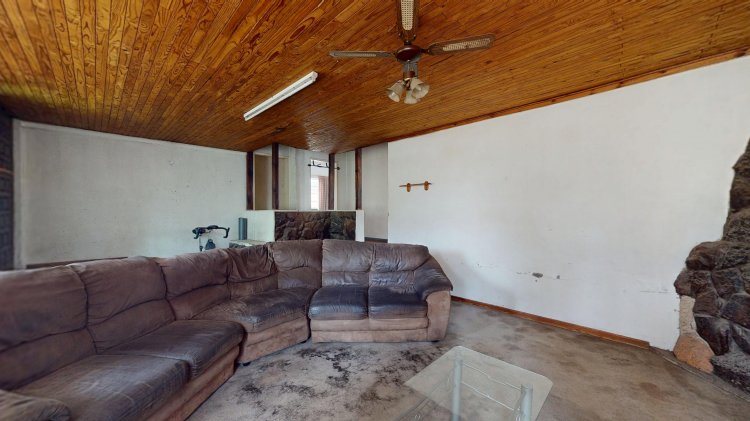 Entertaining is a breeze with a bar area that includes a built-in bar counter and a braai, along with two guest bathrooms equipped with wash basins for convenience. The property also includes a swimming pool that requires some maintenance, as well as a beautifully designed built-in braai area in the backyard.