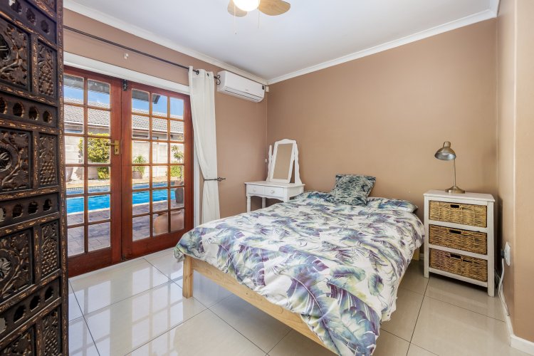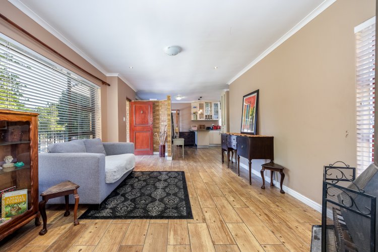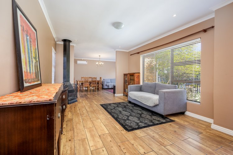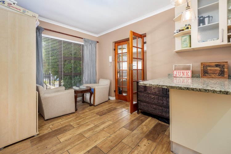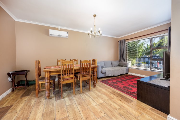 Open plan lounge and dining area with French door opening up onto the pool area and lovely outdoor braai patio.