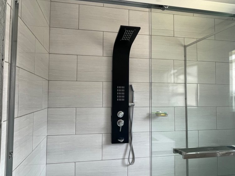 This stylish residence features a beautifully designed kitchen with ample cupboard space, flowing seamlessly into a large open-plan dining and living area, all enhanced by sleek modern downlighting.