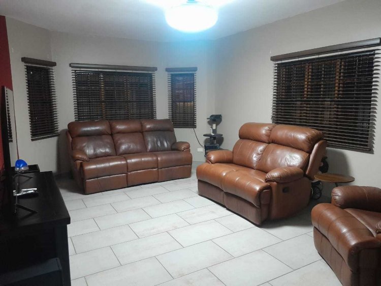 Beautiful Modern 4-Bedroom Double-Storey Home for Sale in Cashan This stunning modern 4-bedroom double-storey home is located in an upmarket and secure complex in Cashan and offers stylish, spacious living. The ground floor features a spacious living room, dining area, and a sleek modern kitchen fitted with a scullery and laundry. Two entertainment areas provide flexible living, with one ideal for use as a study or home office. The enclosed entertainment area includes a built-in braai and opens seamlessly onto the swimming pool—perfect for hosting family and friends. Upstairs, you will find four generously sized bedrooms and two modern bathrooms. The entire home is fully air-conditioned, ensuring comfort throughout the year. Additional features include two water storage tanks, security beams, cameras, and a security alarm, offering excellent peace of mind. The property is neat, modern, and exceptionally well maintained. Outside, the manageable garden surrounds a sparkling swimming pool, while a large carport provides secure parking for up to four vehicles. This home truly ticks all the boxes: modern, spacious, secure, and move-in ready. Don’t delay—contact us today to make this gem your own.