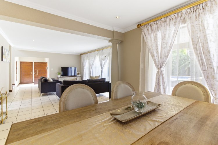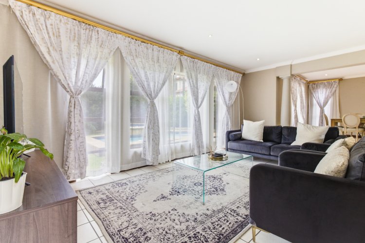 Step into a home that instantly feels generous, welcoming, and designed for easy family living. Set within a small, well-managed estate with 24-hour security in sought-after Douglasdale, this spacious 4-bedroom, 2.5-bathroom home offers comfort, flow, and plenty of room to breathe. A large driveway and garden lead to a double automated garage with direct access into the home—practical, secure, and convenient. As you enter, you are greeted by an impressive sense of space, with high ceilings enhancing the light-filled lounge and open-plan living and dining areas. A guest toilet and a handy storage room tucked neatly under the staircase add to the thoughtful layout. The dining area opens seamlessly onto a covered patio with a built-in braai, overlooking a sparkling pool and separate spa pool—perfect for entertaining or relaxing in the beautifully manicured garden. The kitchen features granite countertops, space for three wet appliances and a double fridge, and opens out to the backyard, making day-to-day living effortless. Upstairs, you wll find four bedrooms. Two bedrooms share a private balcony, while three bedrooms are serviced by a full family bathroom. The spacious main bedroom is a true retreat, complete with a walk-through closet, a private en-suite bathroom, and its own balcony—ideal for quiet mornings or winding down at the end of the day. This is a warm, inviting home that offers space, security, and a lifestyle to match. Strategically located close to highly demanded schools, beautiful parks, gyms, popular restaurants and shopping facilities, major routes, and highways with easy access to the surrounding Bryanston and Fourways suburbs.