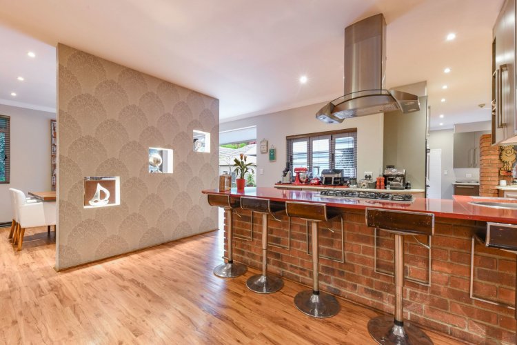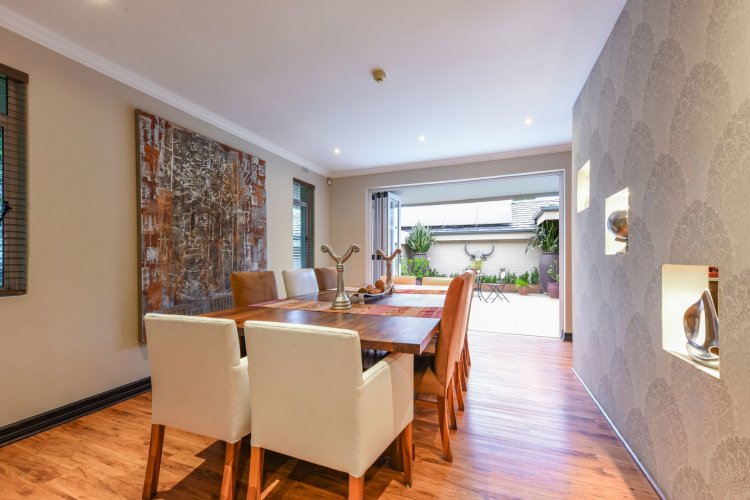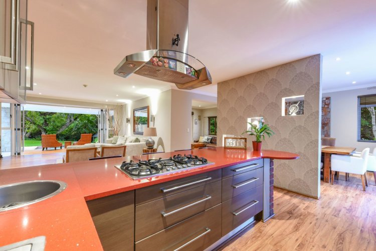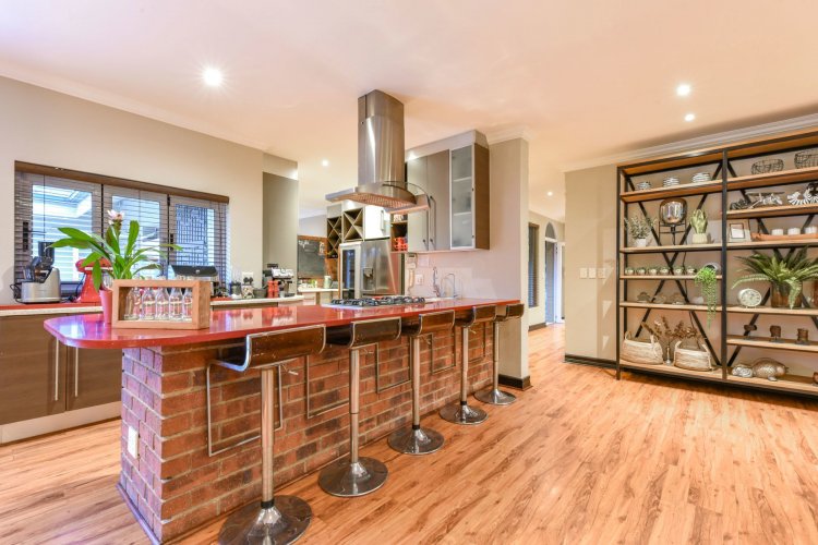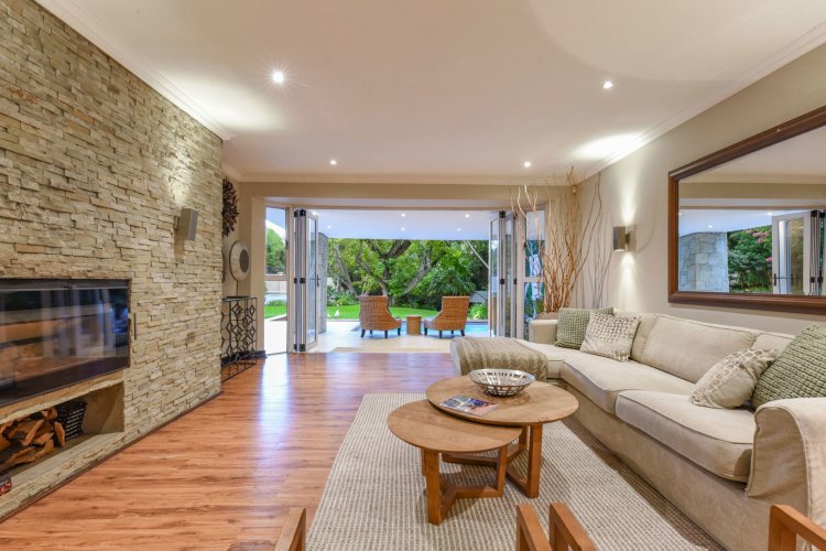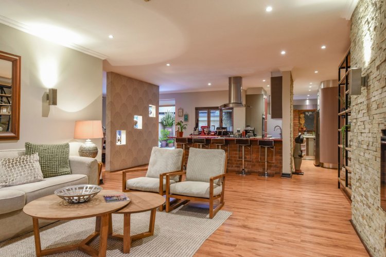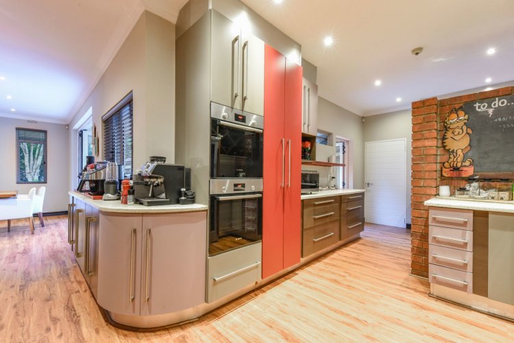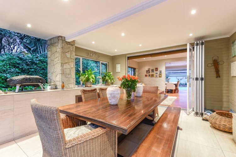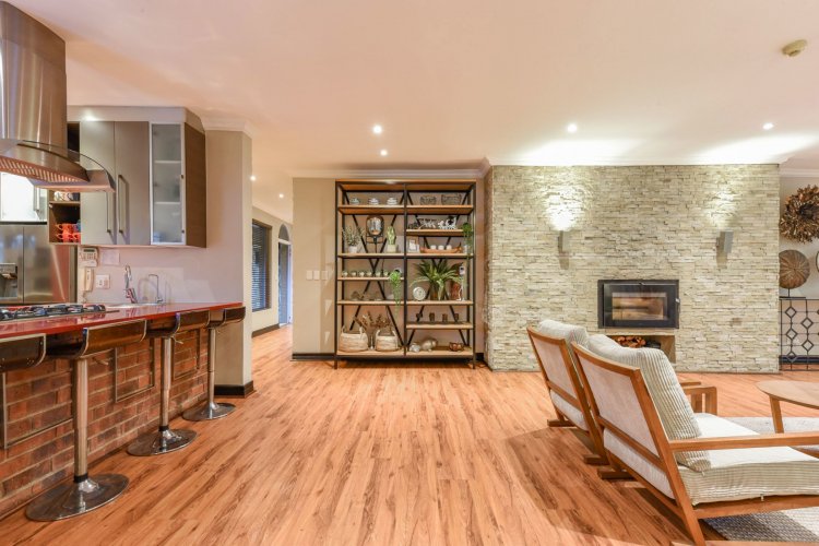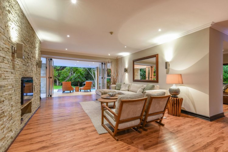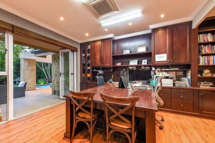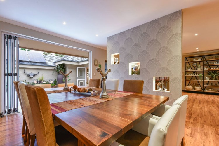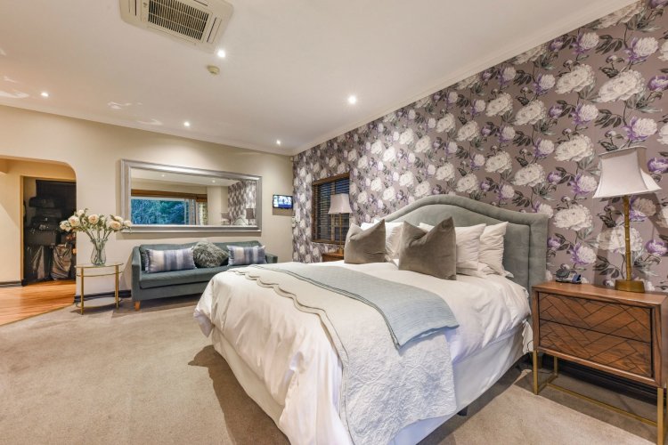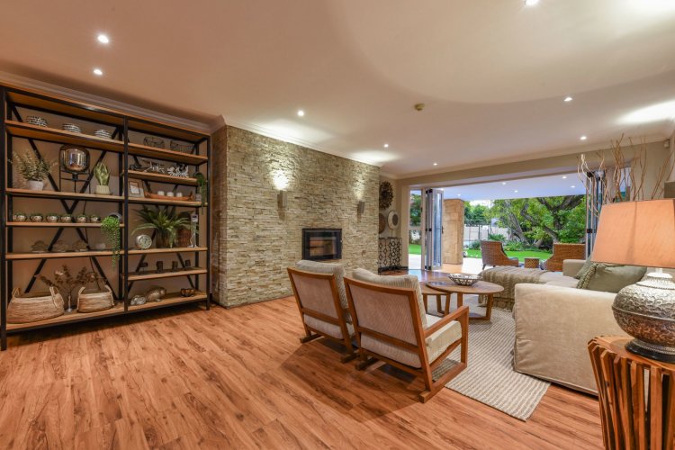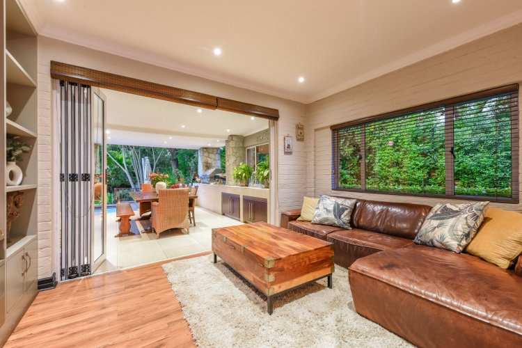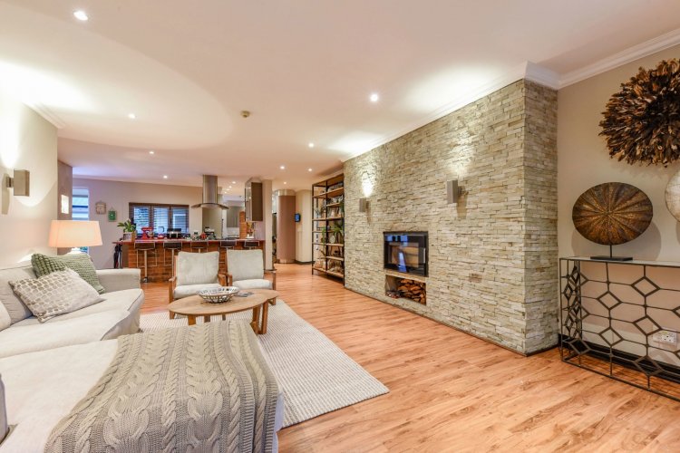 Three large reception spaces — including a fitted modern TV lounge — provide versatile living for both formal and relaxed occasions. A Morso fireplace creates a cosy focal point during winter months. The gourmet kitchen, complete with appliances and separate scullery, is thoughtfully designed for both everyday convenience and entertaining on a grand scale.