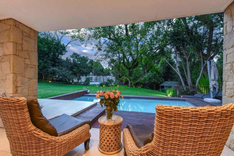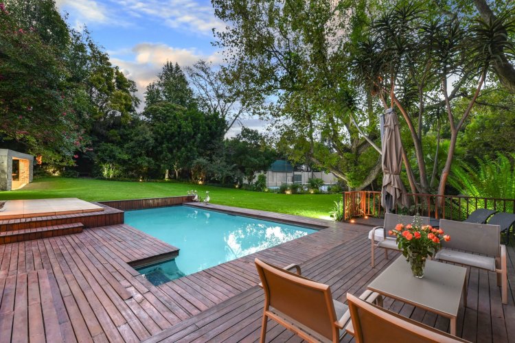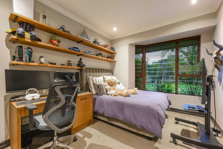 The outdoor offering is truly spectacular. Expansive patios overlook a breathtaking landscaped garden featuring decked walkways, tranquil ponds, and a stunning pool area. The garden was featured in Condé Nast magazine in 2008 and continues to provide a serene, resort-like environment. Additional lifestyle features include a private tennis court with entertainment deck, a fully equipped Wendy house, jungle gym, trampoline, and children's playhouse — creating the ultimate family sanctuary.