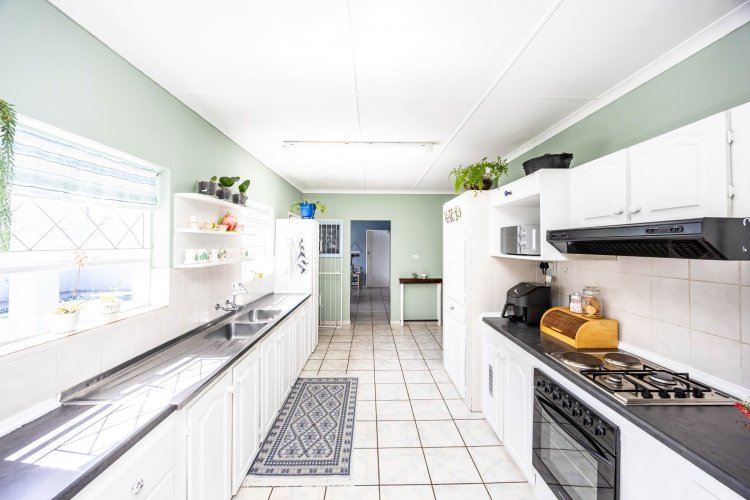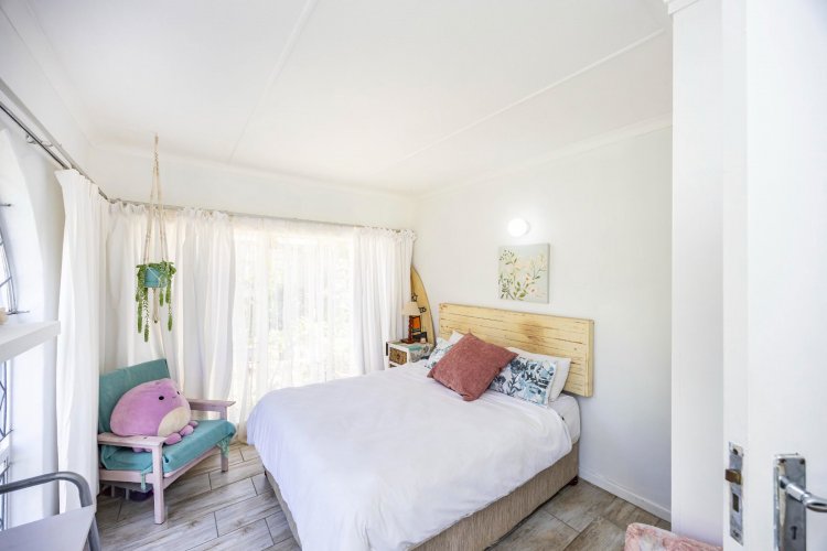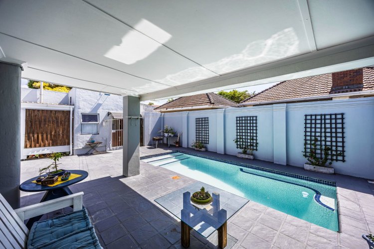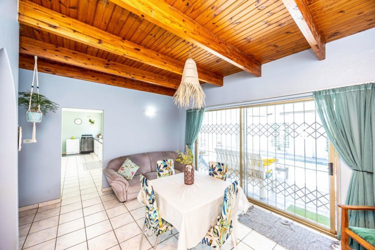 This corner property offers space, charm and ease of living. The family home offers a welcoming entrance that leads to the airy living room, dining room and spacious kitchen. The lightfilled kitchen has ample storage, including a walk-in pantry. A private covered patio and swimming pool promises of sunny days spent with family and friends. The property has a double garage and ample safe parking for guests, as well as a garden flat with a separate entrance and carport.