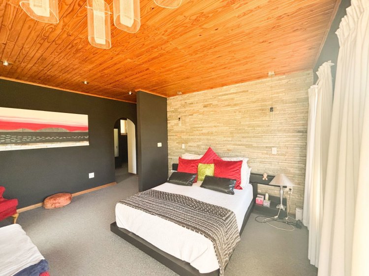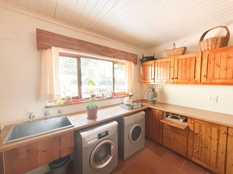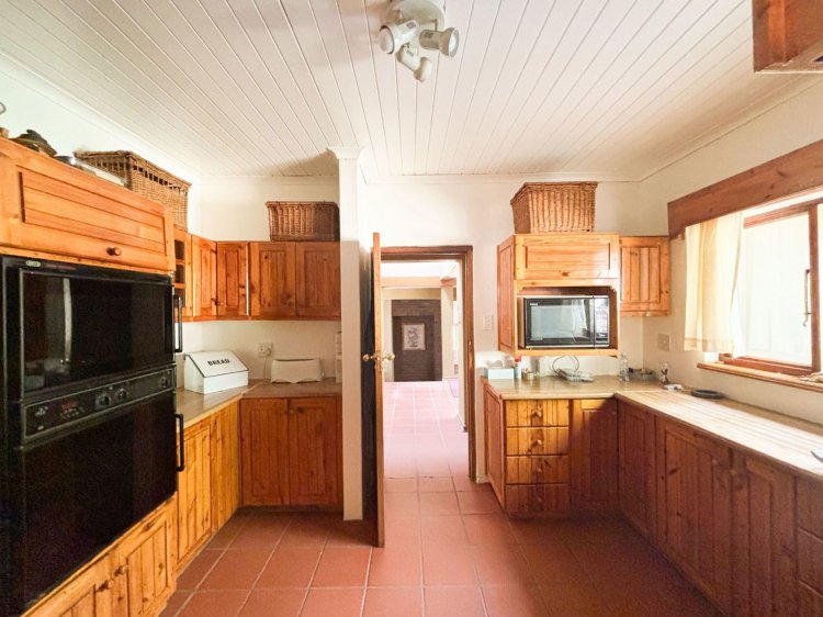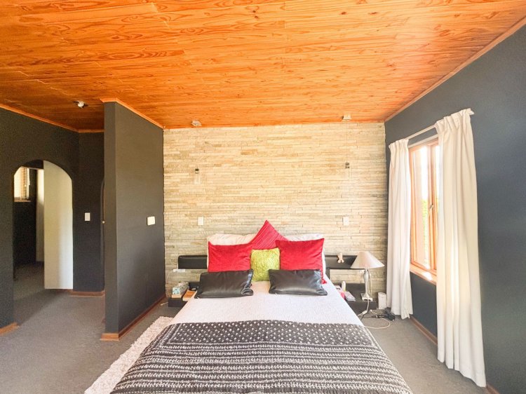 Designed over three levels, the home offers excellent flow and functionality. The lower level includes additional rooms and a living area, ideal for guests or extended family. The middle level forms the heart of the home, featuring a solid wooden kitchen complete with a pantry, scullery, and separate laundry area, as well as a spacious dining area and one of the two large lounges. The upper level is dedicated to the private bedroom section of the home.