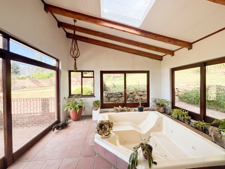 The home is set on a large erf with a maintained garden and immaculate views of nature and the surrounding mountains, offering peace, privacy, and a true lifestyle experience.