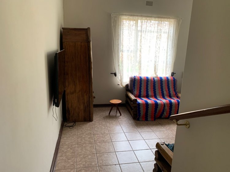 The front welcomes you to a neat garage and carport area with a beautiful driveway that is tarred and a huge flatlet. Inside you come to a spacious kitchen that welcomes you home which has ample storage space. It has built-in cupboards and a scullery, on the other side you come to a dining room that takes you to a fourth bedroom. The lounge has a set of steps going down and has a fireplace, it is ideal and spacious for those family parties and dinners.