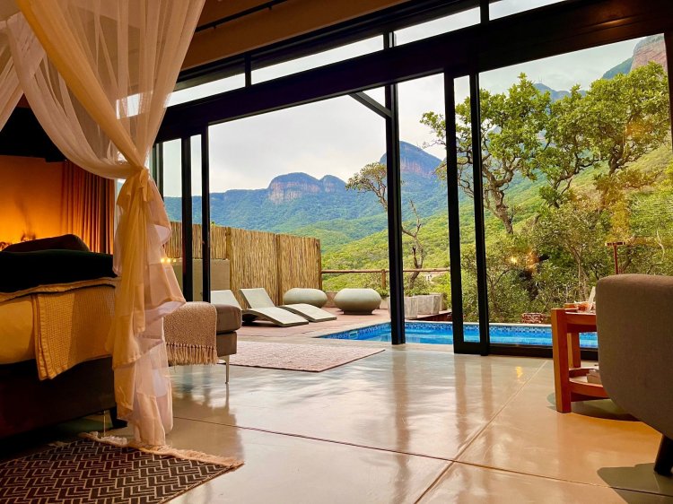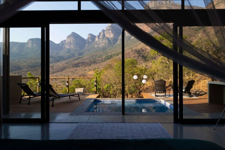 Sole Mandate - Perched high above the historic town of Kampersrus and bordering the Blyde River Canyon Nature Reserve, this exceptional mountain property enjoys one of the most enviable positions in the region. Uninterrupted panoramic views stretch across Mariepskop and the Northern Drakensberg amphitheater, capturing the raw beauty and serenity of the South African escarpment — a standout feature for luxury tourism or private ownership. This boutique luxury lodge comprises an owner's residence and two fully private, eco-friendly villas, each carefully positioned to maximise dramatic mountain and wilderness views. Designed with sustainability at its core, the property operates entirely off-grid with solar power and mountain-sourced water, making it highly attractive to eco-luxury travelers and sustainable investors. Each luxury villa offers: High-end finishes with expansive 3m x 7.5m panoramic windows. Spacious open-plan living areas with luxury hospitality amenities. Private plunge pools and sundecks with breathtaking 180° views. Outdoor walk-in showers and braai facilities. High-speed Wi-Fi, TV with DStv/Netflix, air-conditioning, premium furniture and bedding. Ethanol fireplaces in each bedroom The villas are fully furnished and equipped, featuring well-appointed kitchenettes, braai areas, premium appliances, and covered carports, allowing for flexible use as luxury self-catering accommodation, short-term rentals, or a bespoke hospitality offering. The two-bedroom owner's house is finished to the same high standard and includes two en-suite bedrooms, an open-plan kitchen, lounge and dining area with panoramic mountain views. A large deck, swimming pool, and private boma/braai area are set apart from the villas, ensuring privacy. Additional features include a separate study and scullery. Outbuildings include a fully equipped laundry, solar room, and staff accommodation. The solar system comprises a 16kW inverter, 40kWh battery capacity, and 12.75kWp solar panels. Water is supplied via three 10,000-litre JoJo tanks and filtered for safe drinking. Ideally positioned within the Kruger-to-Canyon Biosphere, the lodge provides easy access to the Kruger National Park, Blyde River Canyon, and the Panorama Route. With established listings on premium travel platforms and strong guest ratings, the property achieves excellent occupancy and premium nightly rates. The combination of exclusivity, sustainability, world-class views, and potential for an additional guest suite makes this a high-value asset in the Limpopo luxury hospitality market. VAT is applicable on the sale.