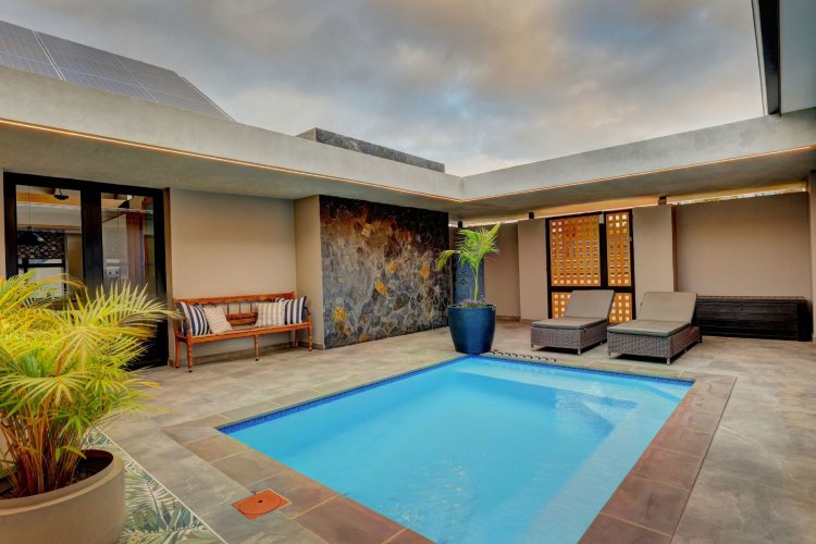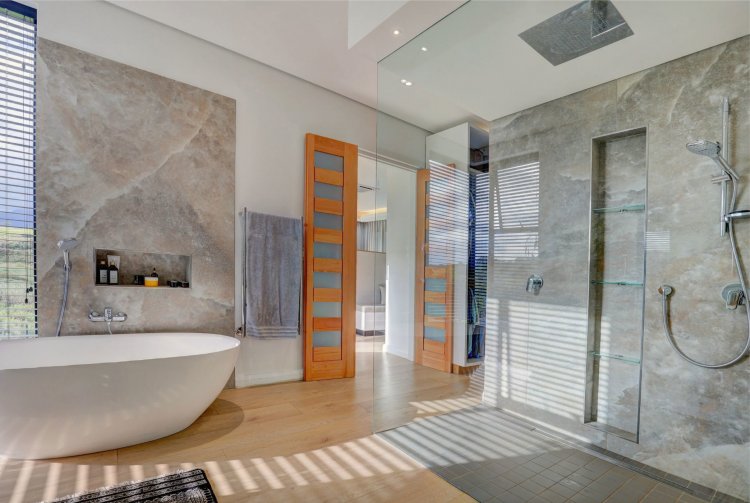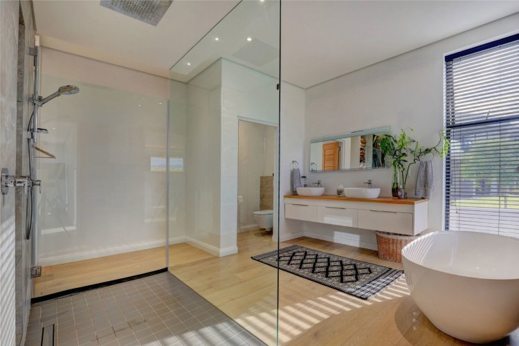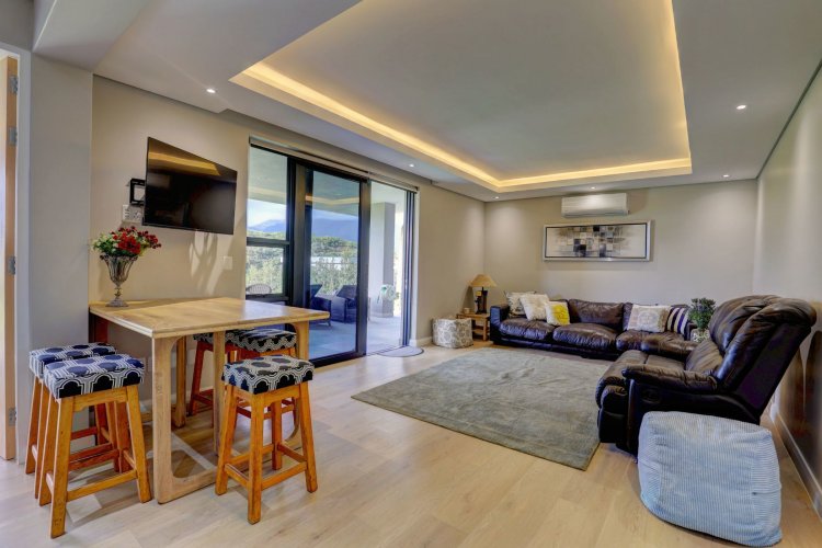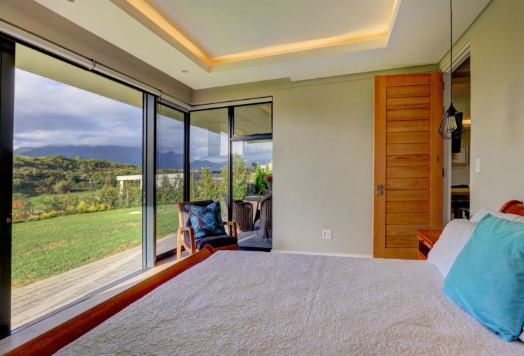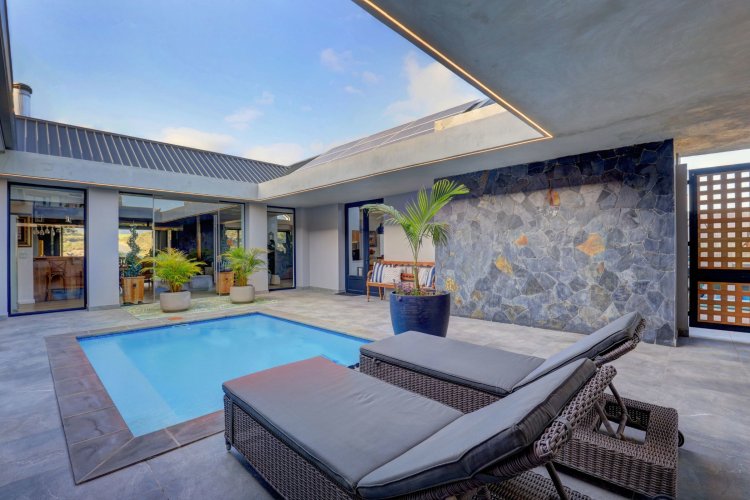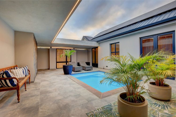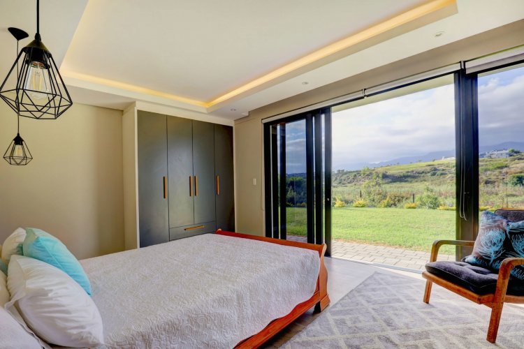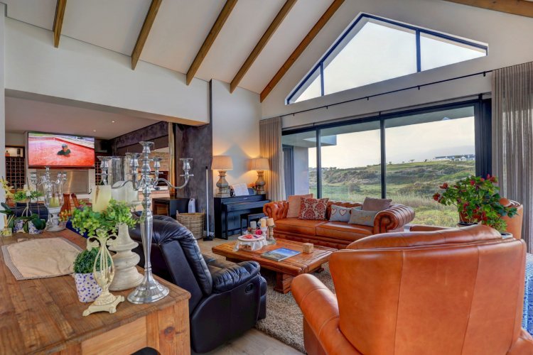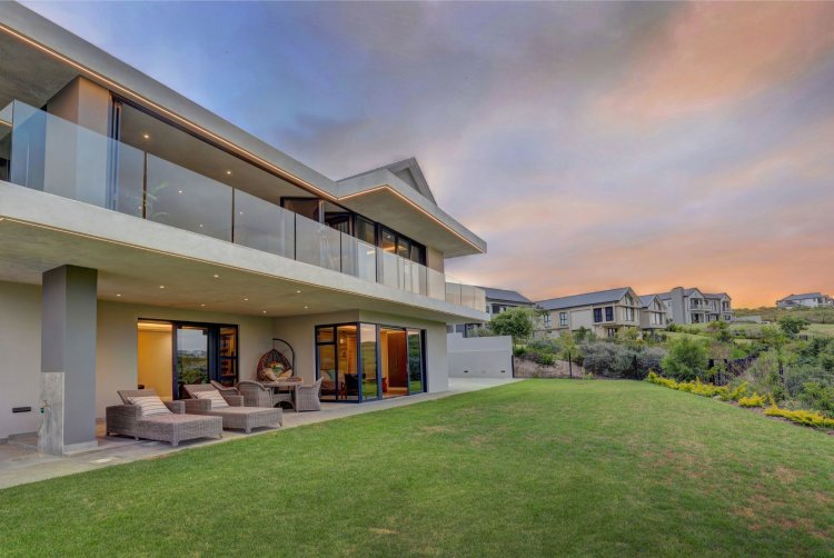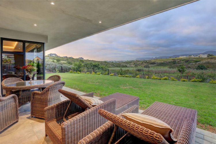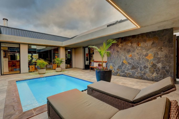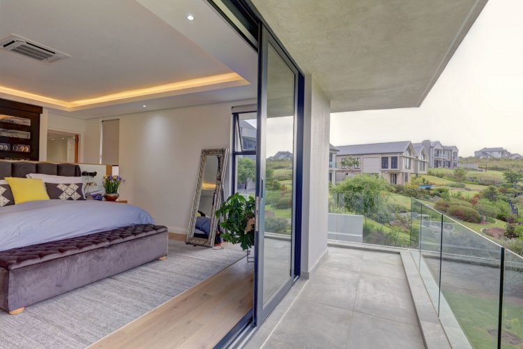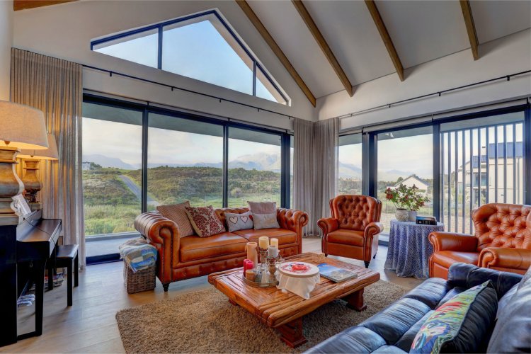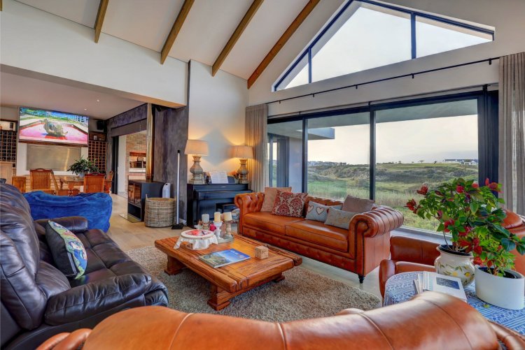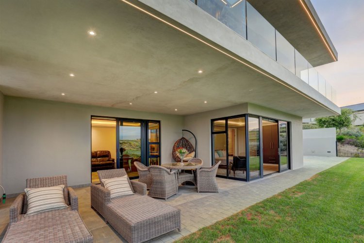 This north facing family home is designed for the entertaining family. Situated on a large corner stand in phase 4, adjacent to the river course and north facing views over the estate and towards the Outeniqua mountains. The house wraps around a central courtyard with swimming pool.