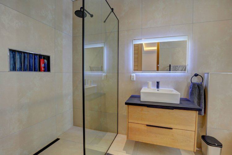 On the lower level of the house is a self contained 2 bedroom living unit. Both bedrooms are north facing with ensuite bathrooms sharing a living area with kitchenette. Bedrooms and living area open onto the patio leading into the garden.