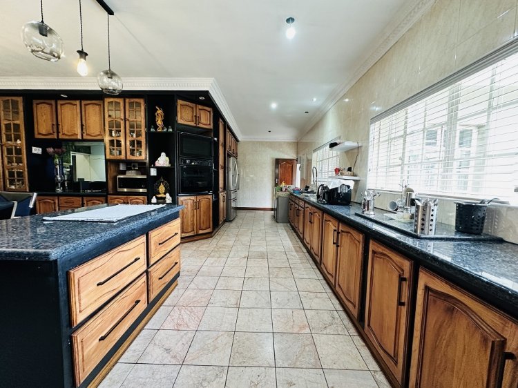This home boasts a massive chefs kitchen with granite countertops, double eye-level oven, hob, and ample cupboard space. There is a separate scullery section for added convenience as well. 4 Spacious and luxurious bedrooms with built in cupboards and 3 bathrooms. Main bedroom has a walk-in closet made of solid oak and en-suite bathroom.