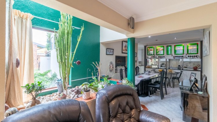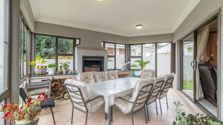 Tucked away in a peaceful, secure boomed-off enclave, this charming family home offers space, comfort and beautiful views. The warm, inviting lounge flows into an entertainer’s area with stacker doors, a built-in braai and ample room to host family and friends year - round. The dining area connects to a stylish, well-appointed kitchen that’s perfect for those who love to cook and connect. There are four spacious bedrooms with built-in cupboards, including a main en-suite, plus a full family bathroom. A separate study provides the ideal work-from-home space or quiet zone for the kids.