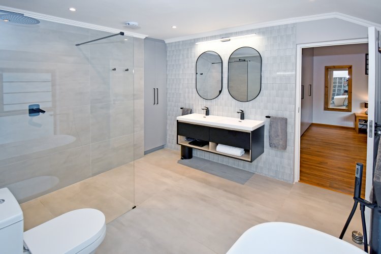 This home offers four generously sized bedrooms with stylish laminate flooring. Two bedrooms boast luxurious full en suite bathrooms featuring modern standalone baths - creating spa-like sanctuaries. The main suite is particularly impressive, complete with a walk-through dressing area from the bathroom to the bedroom or could be used as a private study nook, offering both elegance and practicality. A third bathroom with shower, basin and WC comfortably services the additional bedrooms.