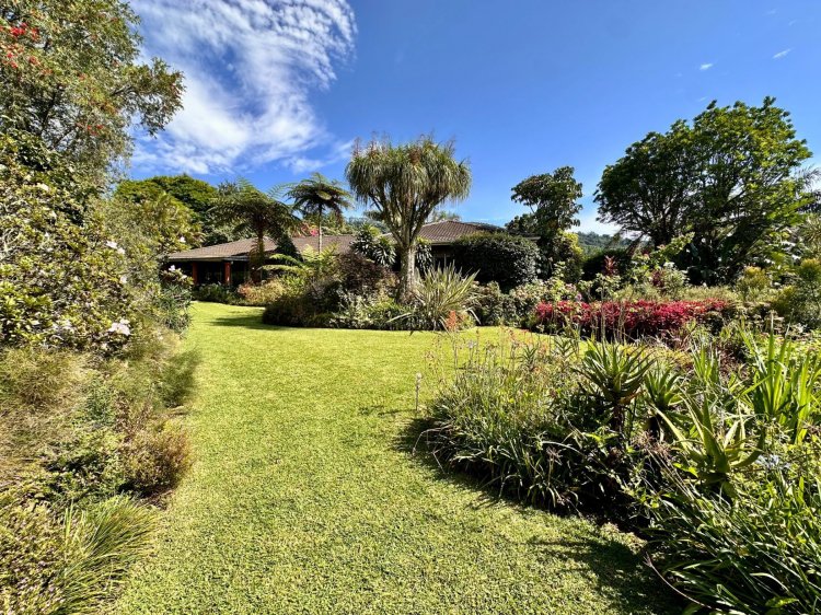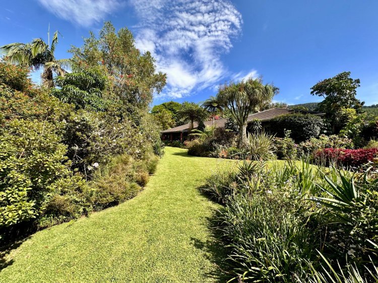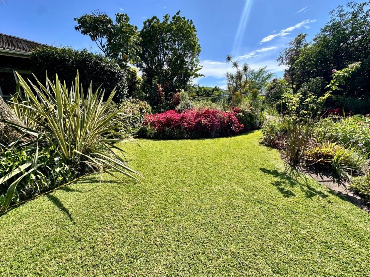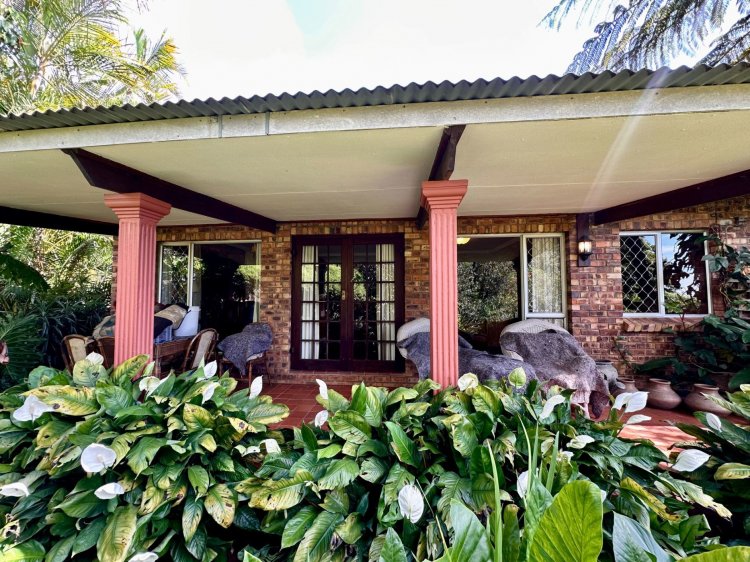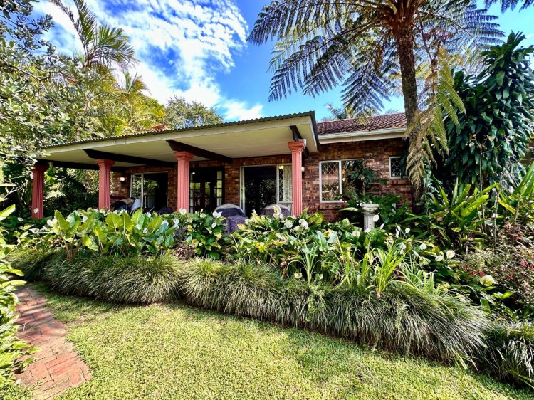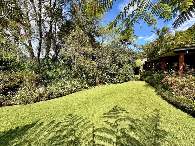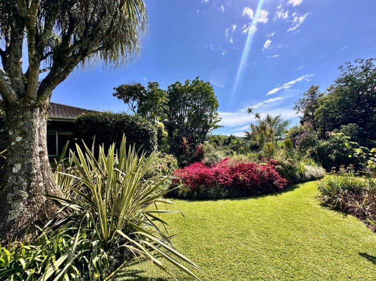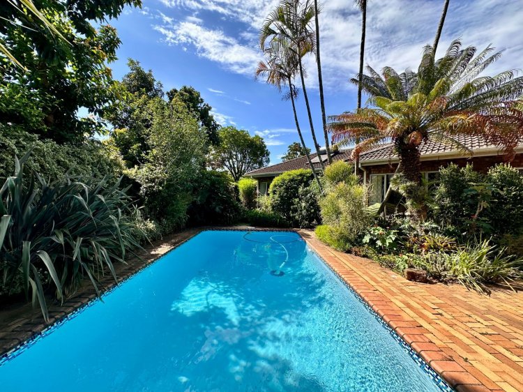Outdoors, enjoy a sparkling swimming pool with an undercover patio, perfect for warm summer days as well as a lush, flower-filled garden that feels like your own private botanical retreat. An additional covered patio near the living area provides another relaxing outdoor space.